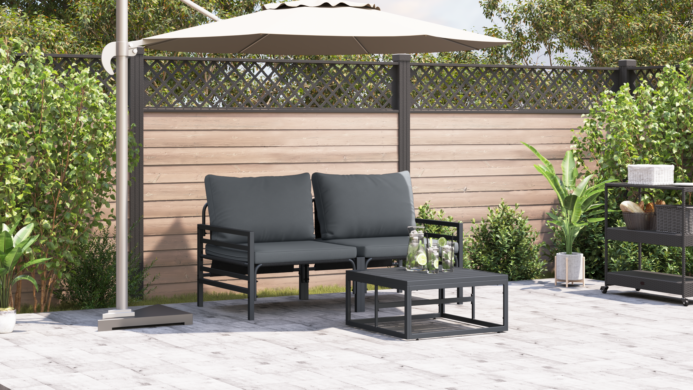Setul de mobilier ăsta e o alegere smart pentru orice grădină, curte sau terasă, combinând un design elegant cu utilitatea. E construit să dureze, indiferent de vreme, așa că o să ai un loc super pentru cină, relaxare sau distracție. Culoarea modernă antracit aduce un aer chic în decorul tău exterior, făcându-l să pară primitor - perfect pentru întâlniri mici sau petreceri mari. Bucură-te de momente de relaxare sau de socializare cu acest set versatil și elegant.