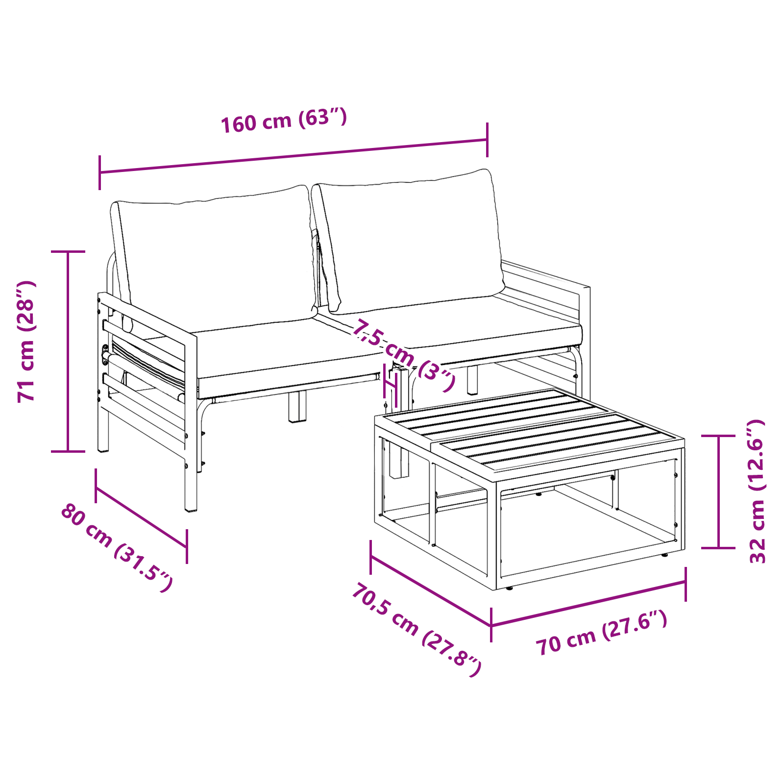 - Mărime: 70 x 70.5 x 32 cm (W x L x H)<\li>