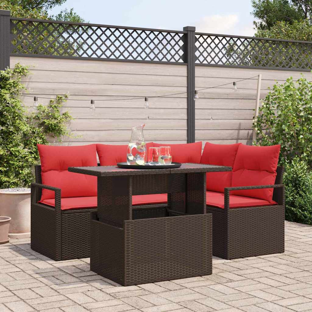 Set de canapele pentru grădină 5 pcs Maro și roșu poliratan GartenMobel Dekor