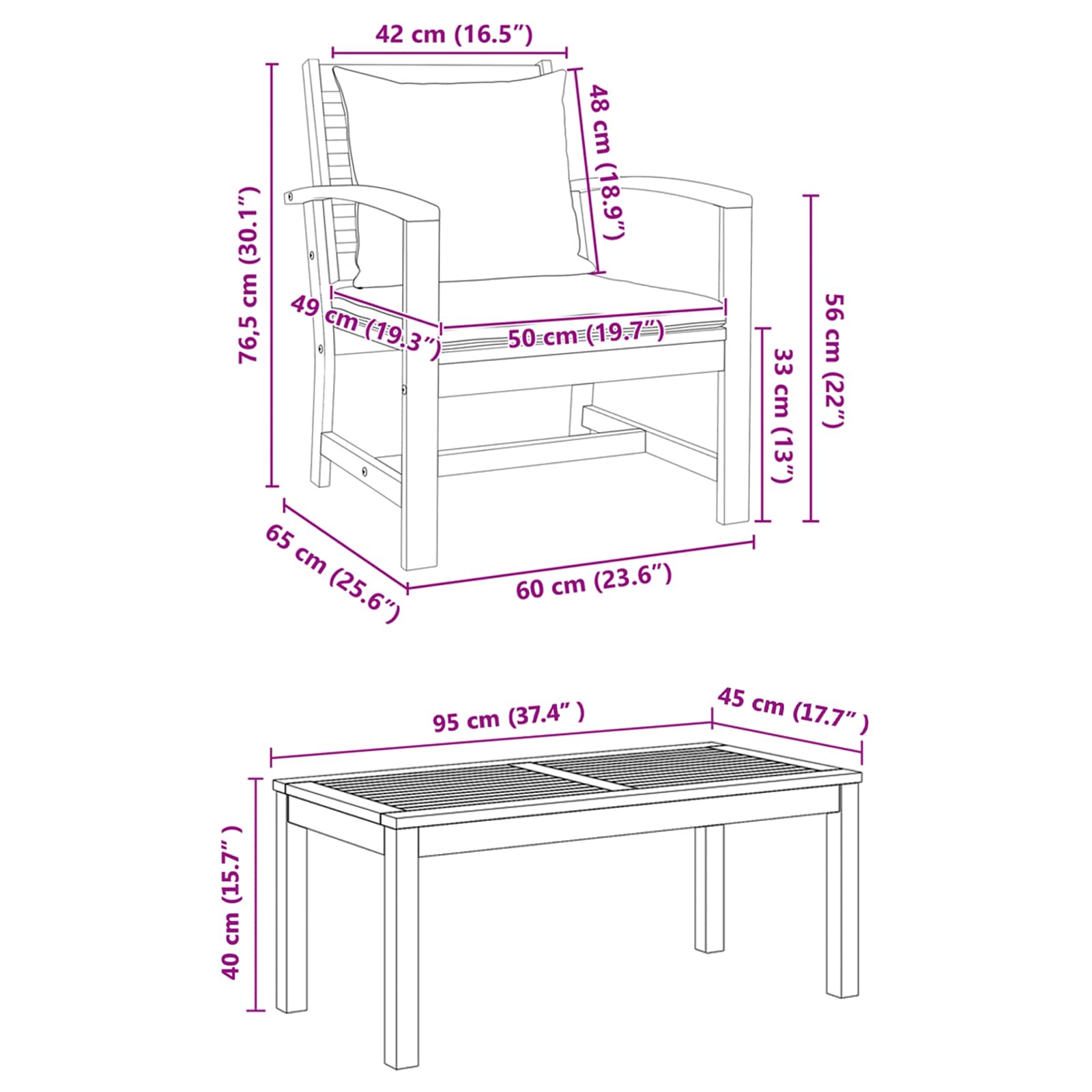 • 1 x Masă: 95 x 45 x 40 cm (LxWxH)