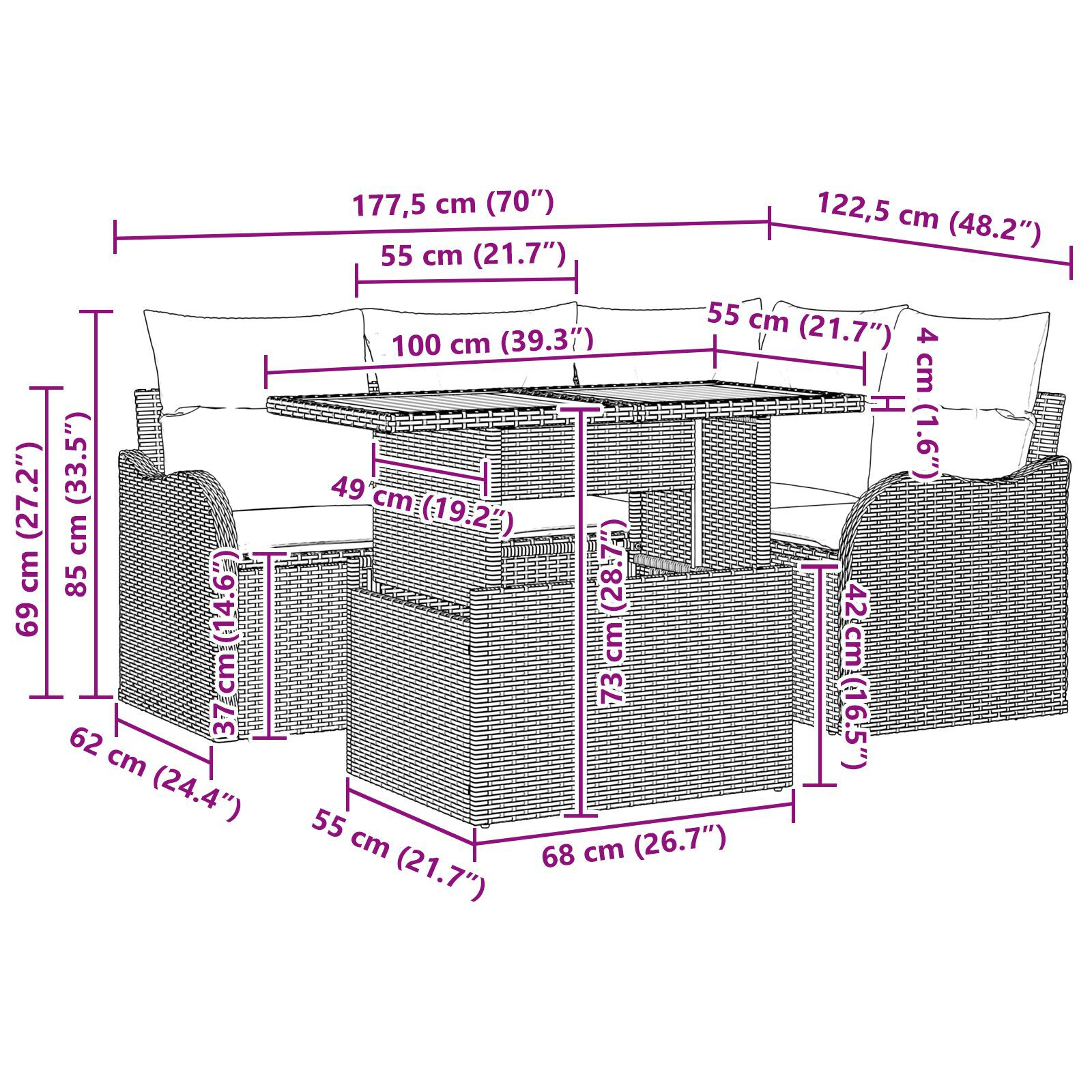 Set de canapele pentru grădină 5 piese cu perne Negru Ratan Poli Acacia, Set de canapea pentru grădină 2 locuri cu perne Negru Ratan Poli GartenMobel Dekor