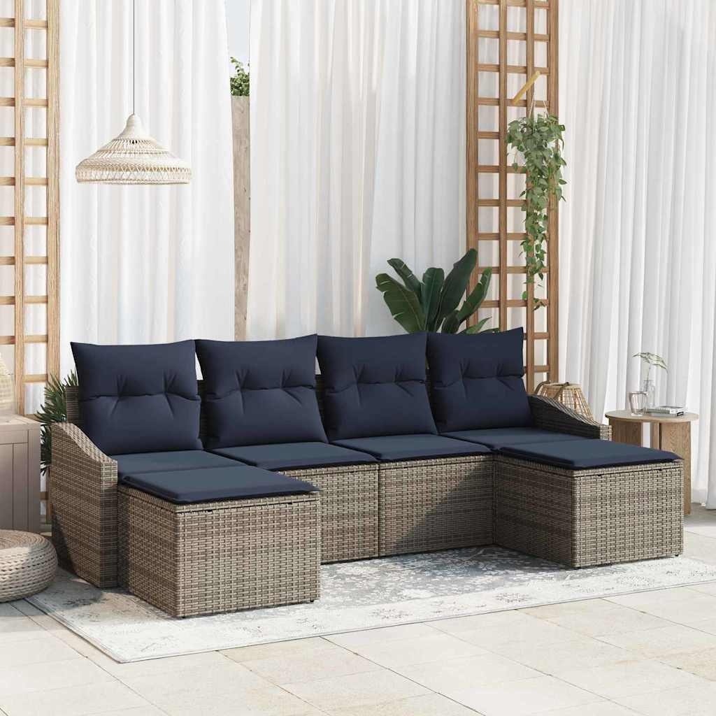 Set de canapele pentru grădină 6 pcs Gri și bleumarin poliratan GartenMobel Dekor