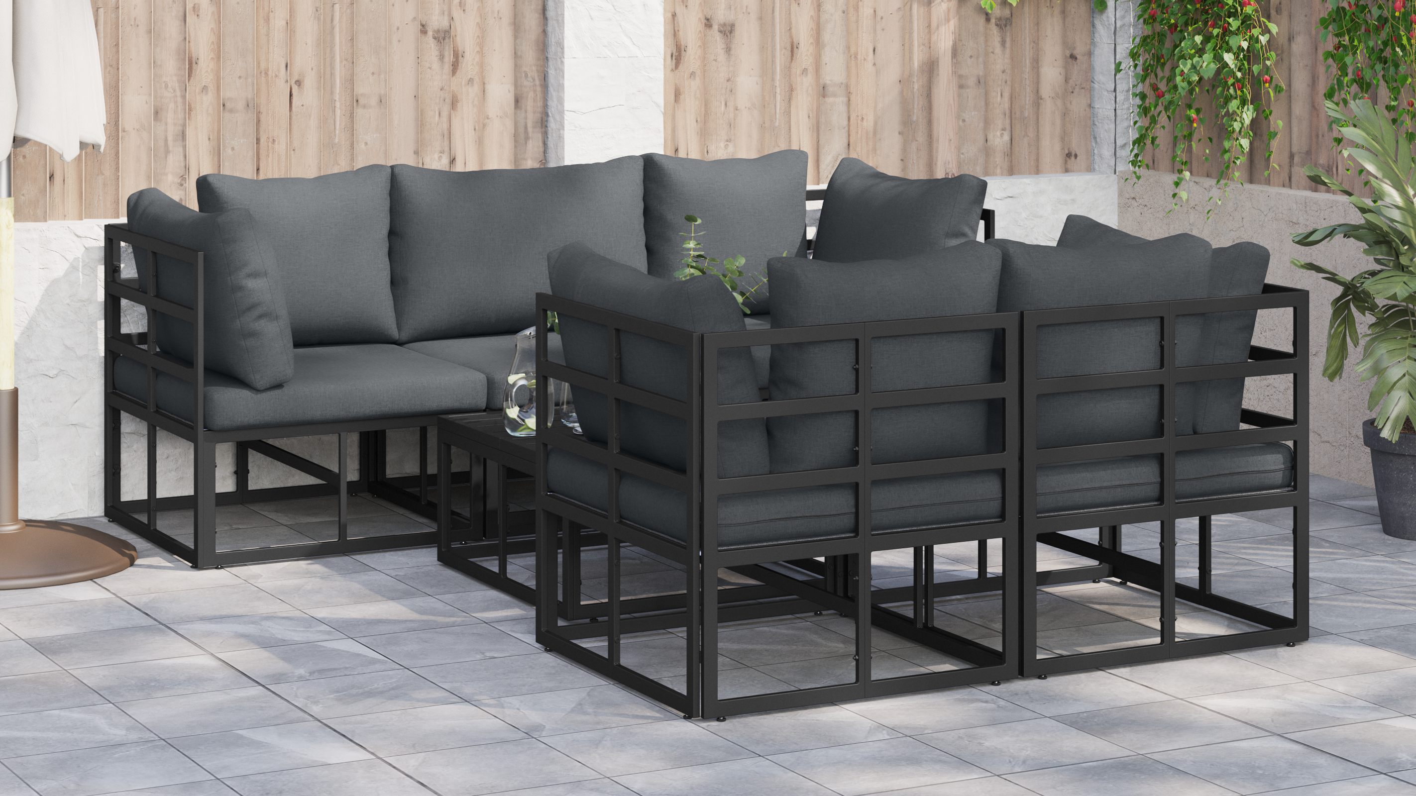 Set de canapele pentru grădină 6 pcs Negru 70 x 70 x 32 cm GartenMobel Dekor