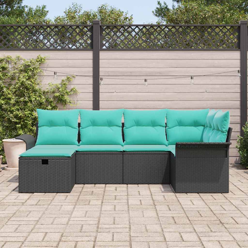 Set de canapele pentru grădină 6 pcs Negru și Turcoaz poliratan GartenMobel Dekor