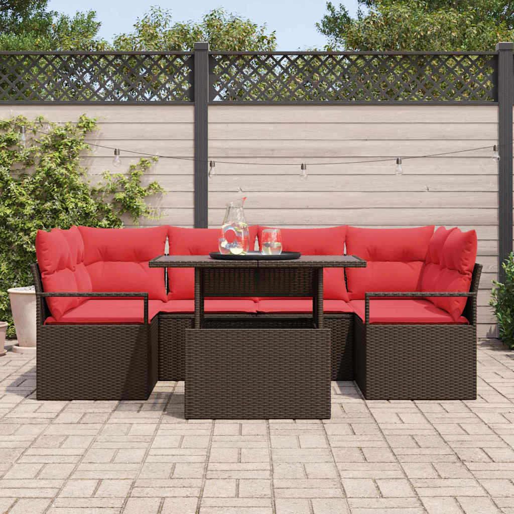 Set de canapele pentru grădină 7 pcs maro și roșu poliratan GartenMobel Dekor