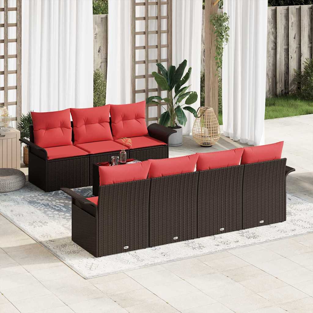 Set de canapele pentru grădină 8 pcs Beige și Roșu poliratan GartenMobel Dekor