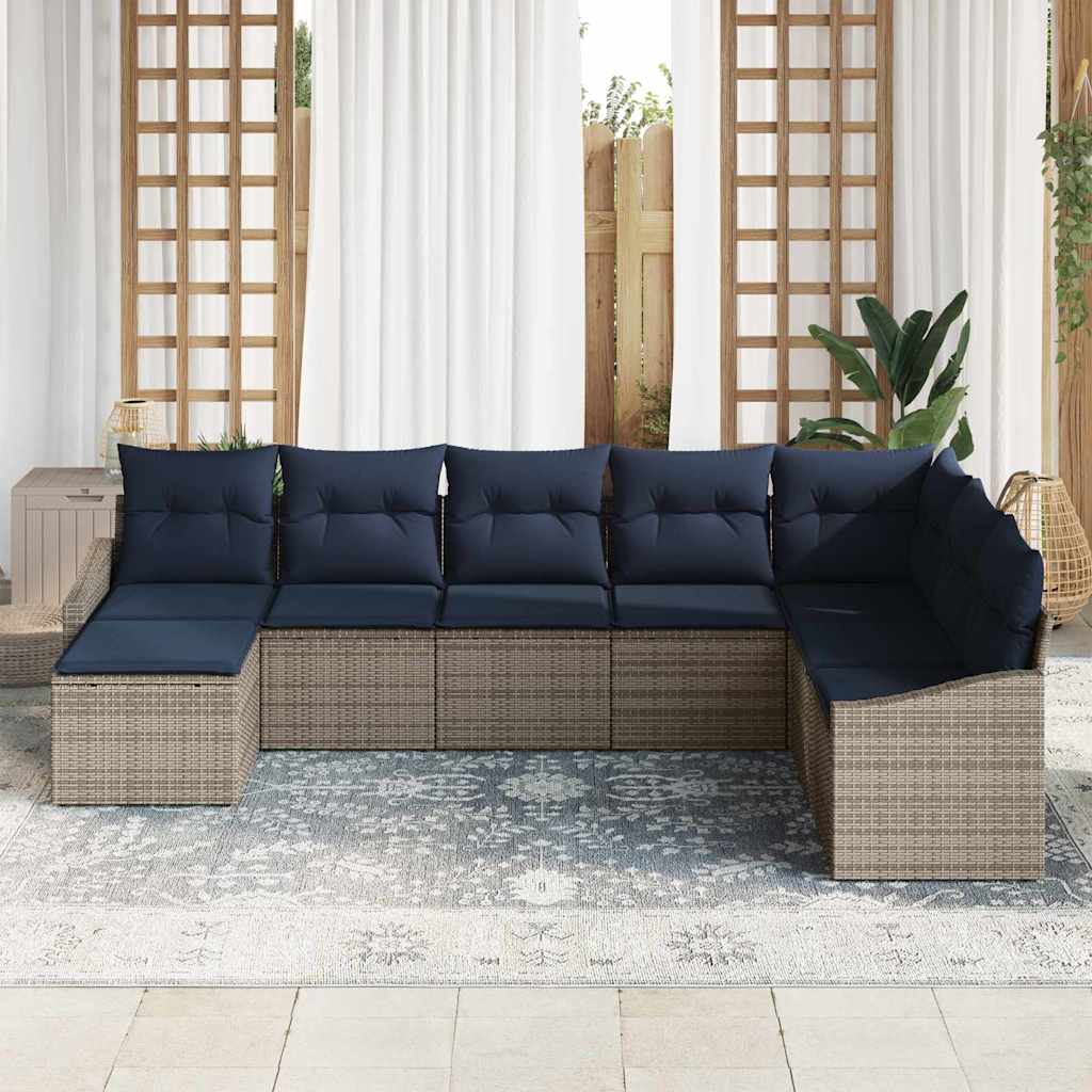 Set de canapele pentru grădină 8 pcs Gri și bleumarin poliratan GartenMobel Dekor