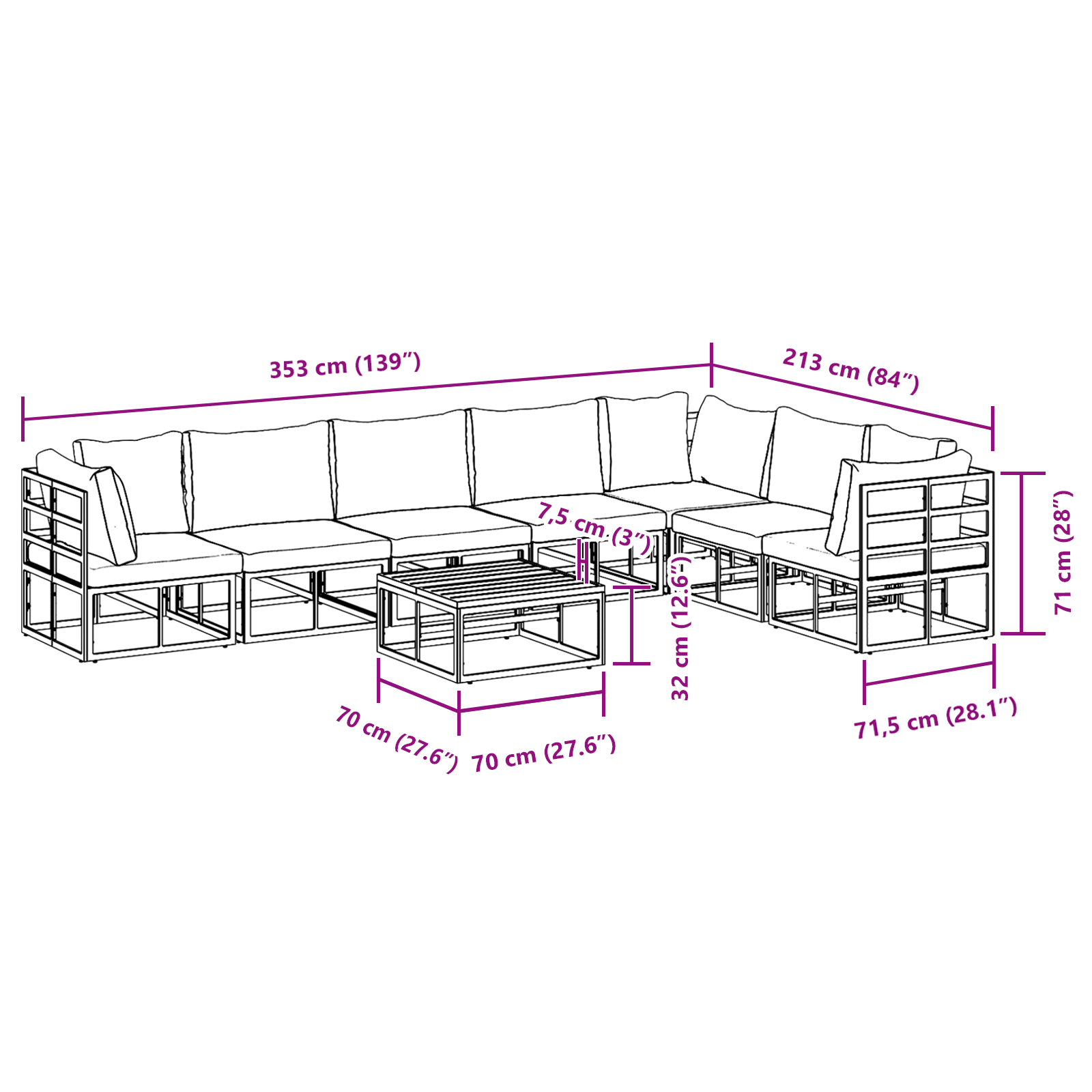 Set de canapele pentru grădină 8 pcs Negru 70 x 70 x 32 cm GartenMobel Dekor