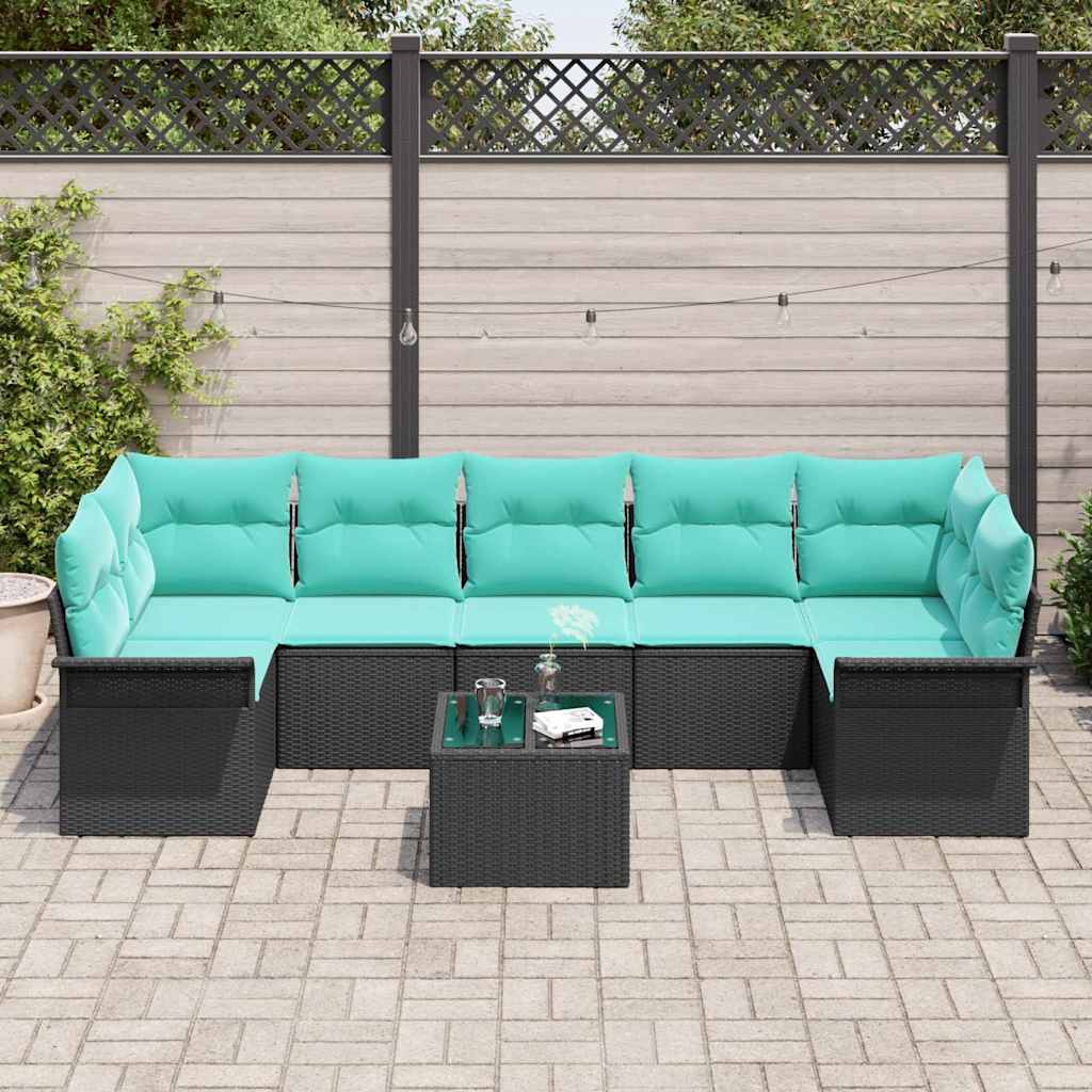 Set de canapele pentru grădină 8 pcs Negru și Turcoaz poliratan GartenMobel Dekor