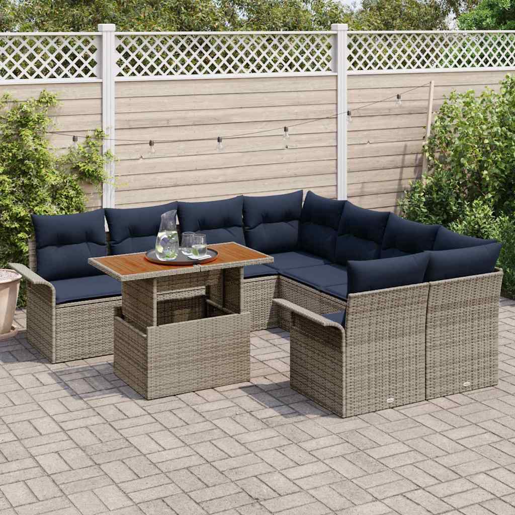 Set de canapele pentru grădină 9 pcs Gri Rattan poli GartenMobel Dekor