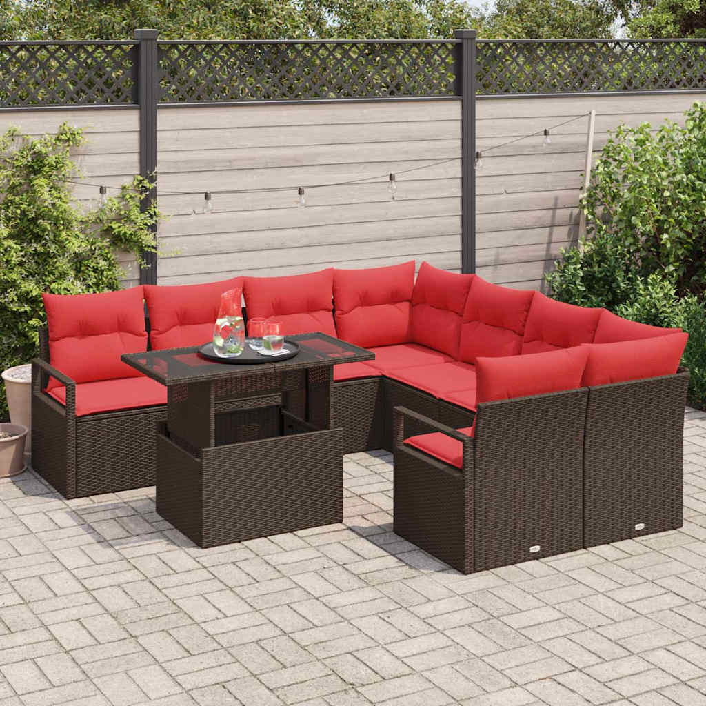 Set de canapele pentru grădină 9 pcs Maro și roșu poliratan GartenMobel Dekor