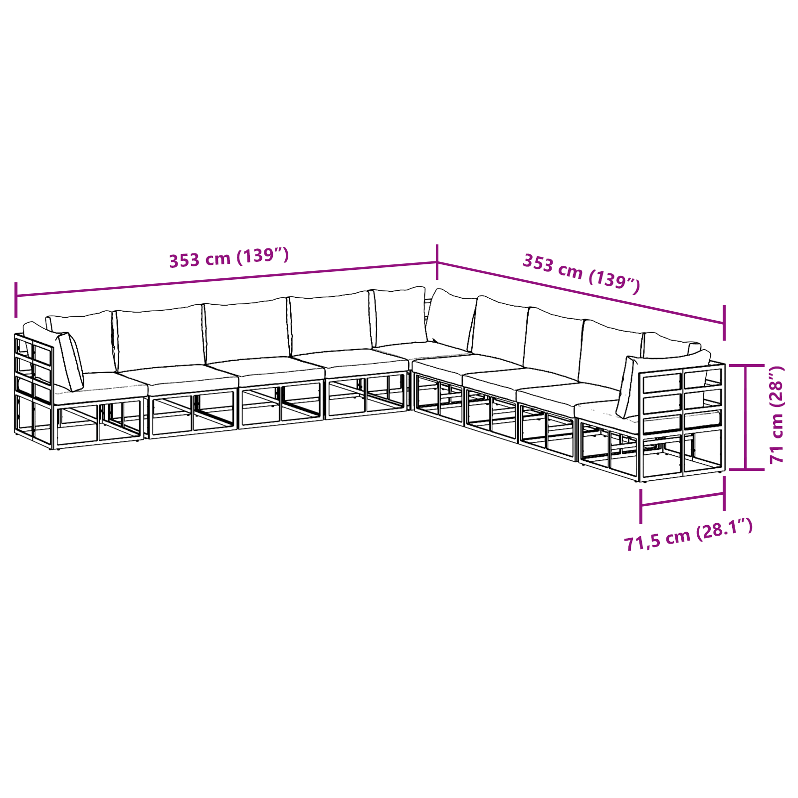 Set de canapele pentru grădină 9 pcs Negru 353 x 353 x 71 cm GartenMobel Dekor