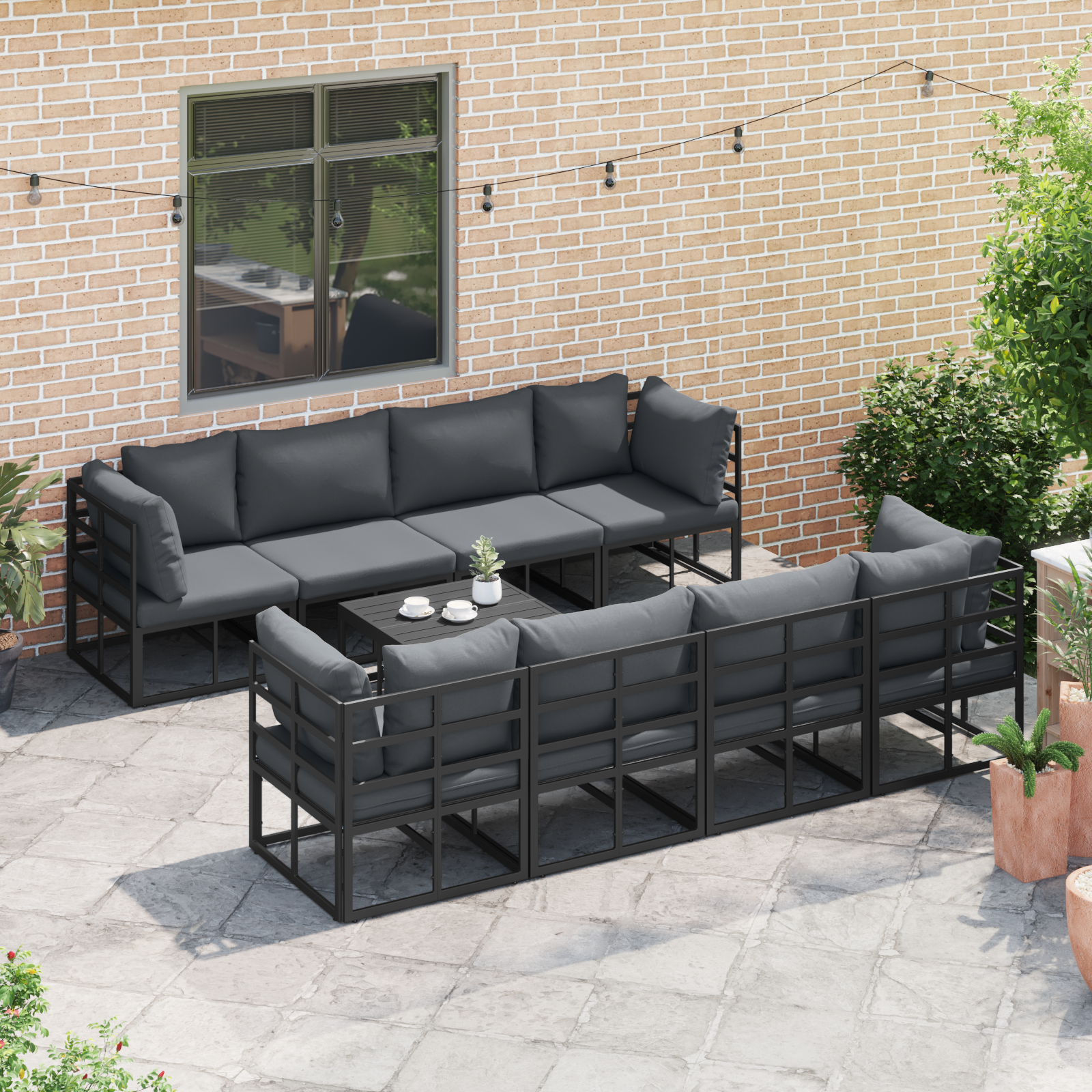 Set de canapele pentru grădină 9 pcs Negru 70 x 70 x 32 cm GartenMobel Dekor