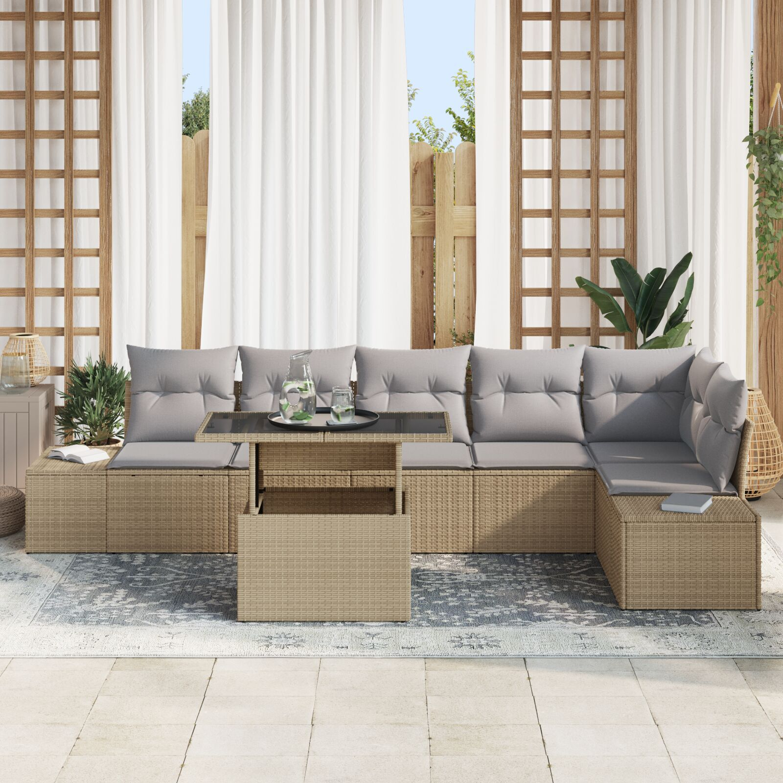 Set de canapele pentru grădină cu 7 piese și perne Bej din poliratan GartenMobel Dekor