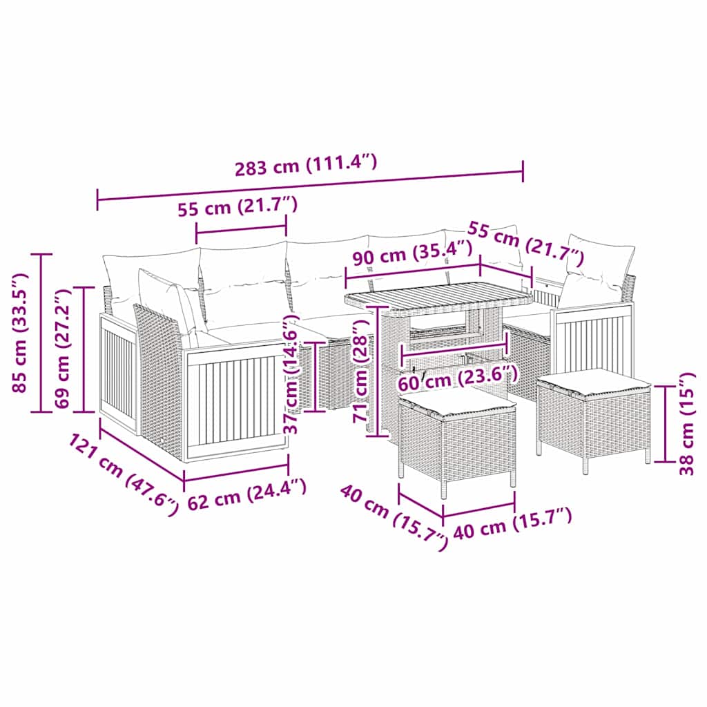 Specificatii Set canapele grădină pernă 10 pcs