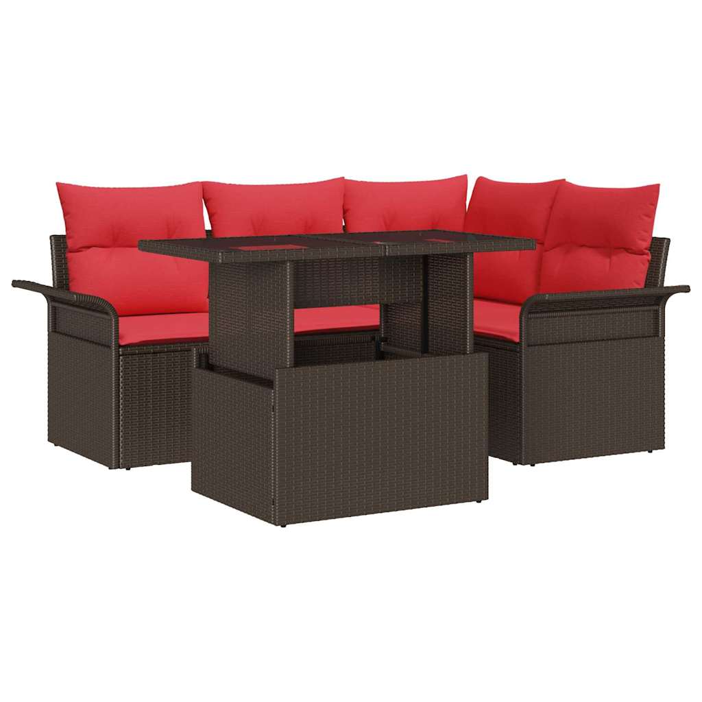 Set de canapele pentru grădină cu pernă 5 pcs Maro Poli Rattan GartenMobel Dekor