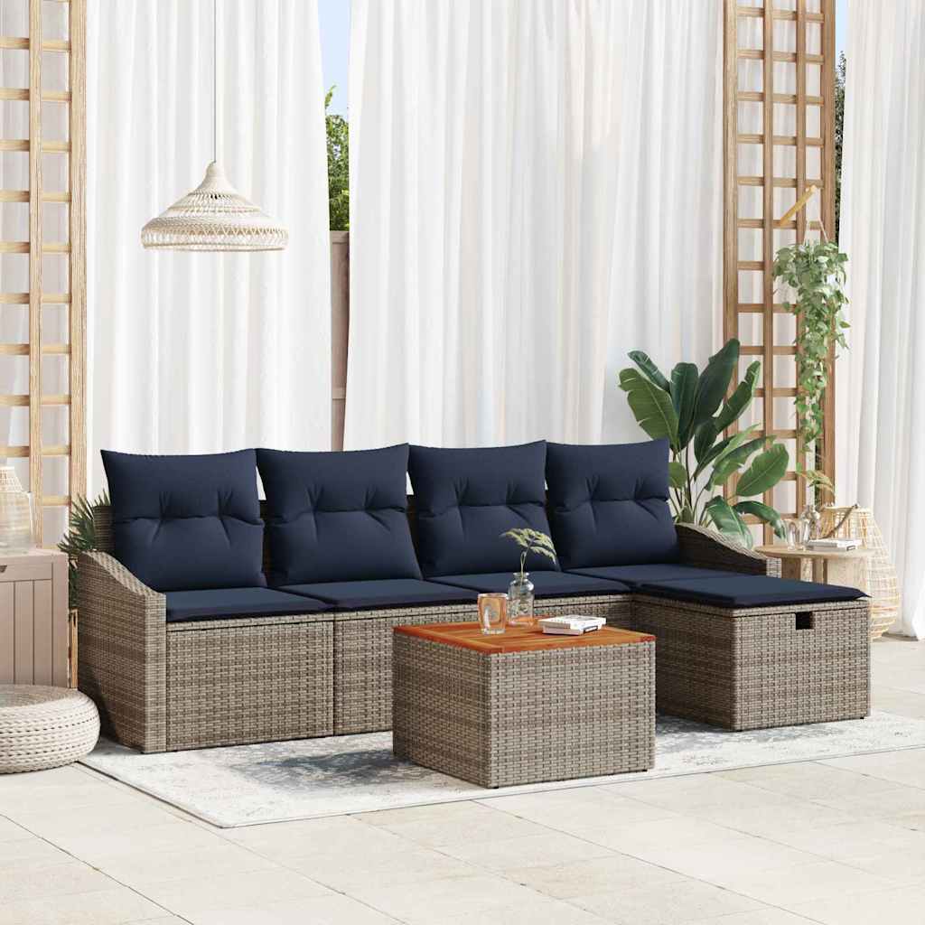 Set de canapele pentru grădină cu pernă 6 pcs Gri Rattan poli GartenMobel Dekor