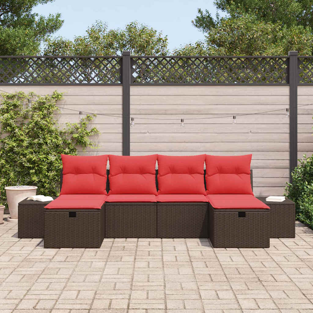 Set de canapele pentru grădină cu pernă 6 pcs Maro poliratan GartenMobel Dekor