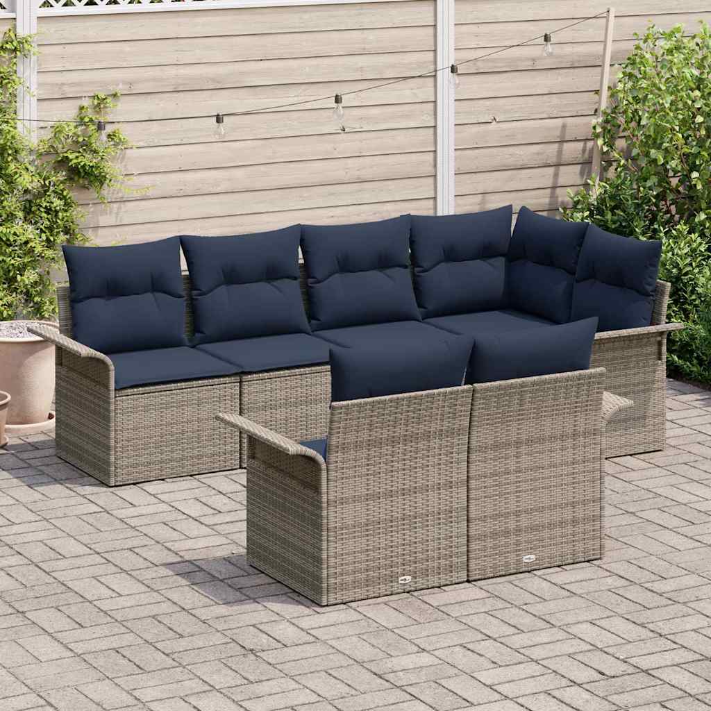 Set de canapele pentru grădină cu pernă 7 pcs Gri Rattan poli GartenMobel Dekor
