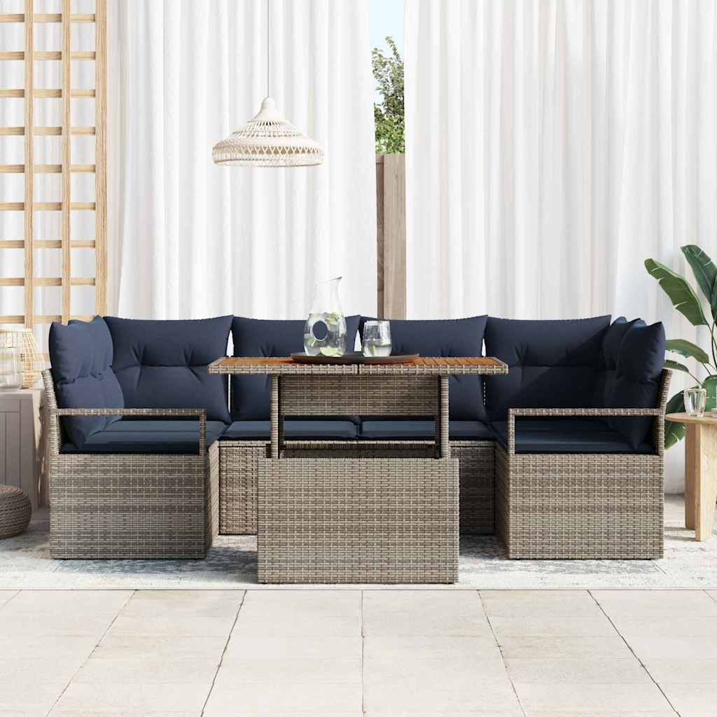 Set de canapele pentru grădină cu pernă 7 pcs gri și bleumarin GartenMobel Dekor