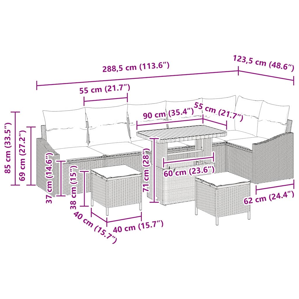 Set de canapele pentru grădină cu pernă 9 pcs Bej Rattan poli GartenMobel Dekor