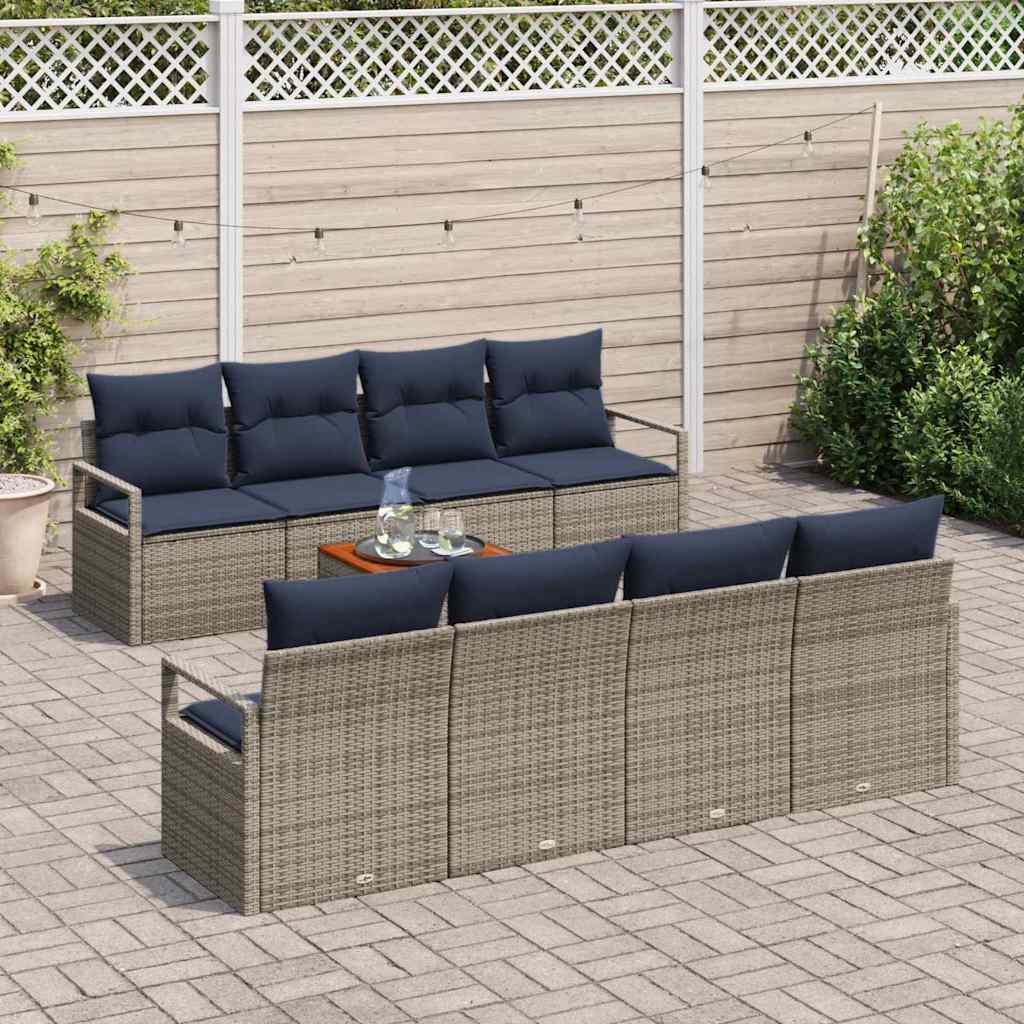 Set de canapele pentru grădină cu pernă 9 pcs Gri poliratan GartenMobel Dekor