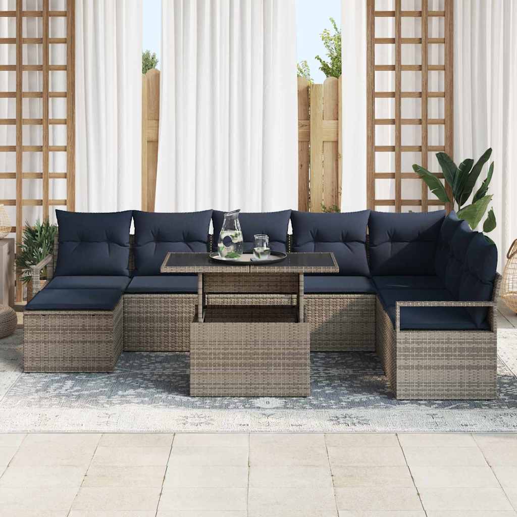 Set de canapele pentru grădină cu pernă 9 pcs gri și bleumarin GartenMobel Dekor