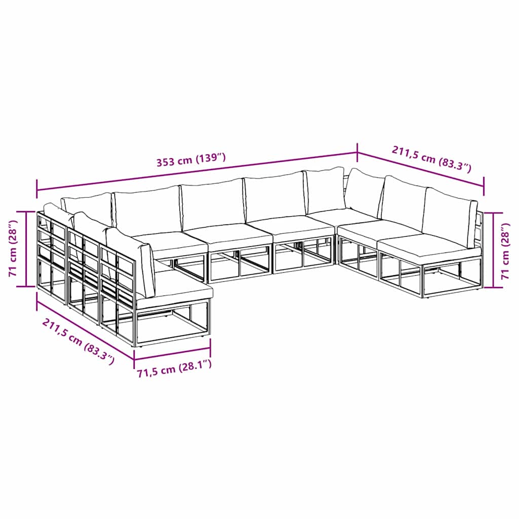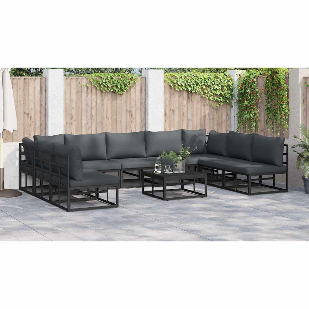 Set de canapele pentru grădină cu pernă 9 pcs Negru Aluminiu GartenMobel Dekor