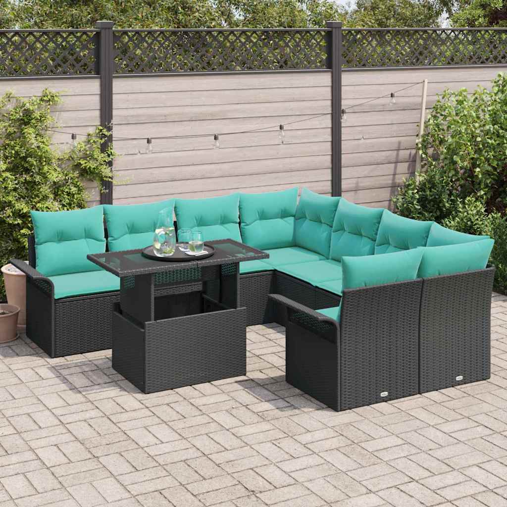 Set de canapele pentru grădină cu pernă 9 pcs Negru Poli Rattan GartenMobel Dekor
