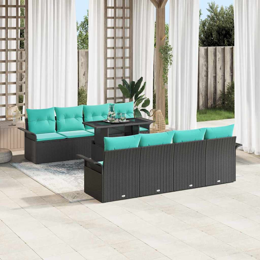 Set de canapele pentru grădină cu pernă 9 pcs Negru Poli Rattan GartenMobel Dekor