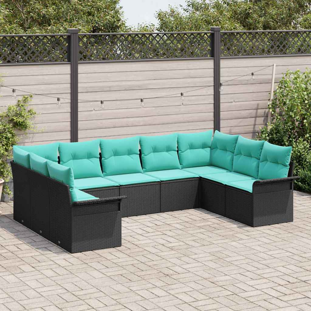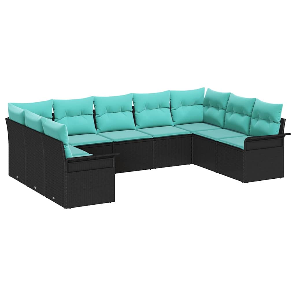 Set de canapele pentru grădină cu pernă 9 pcs Negru poliratan GartenMobel Dekor