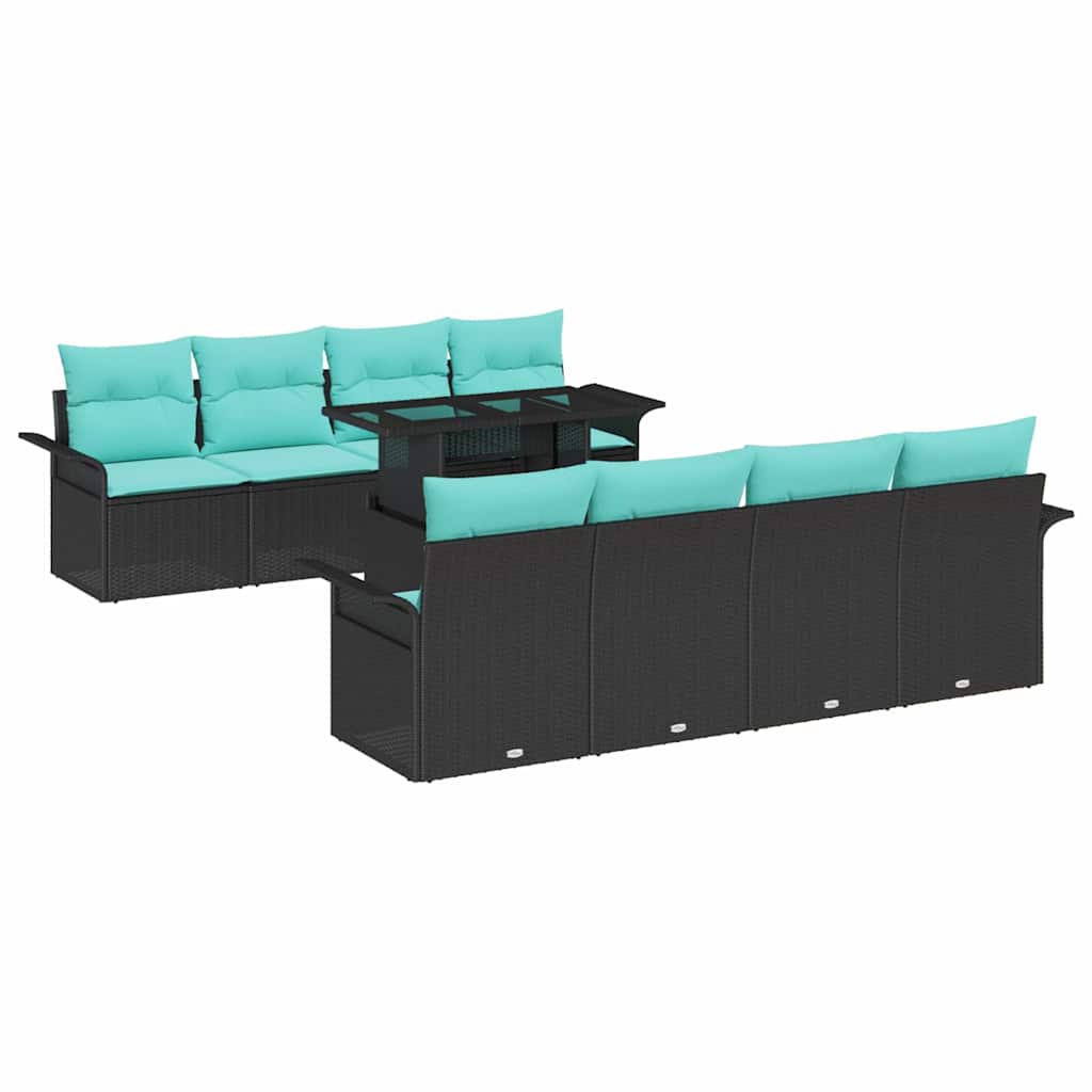 Set de canapele pentru grădină cu pernă 9 pcs Negru Rattan poli GartenMobel Dekor
