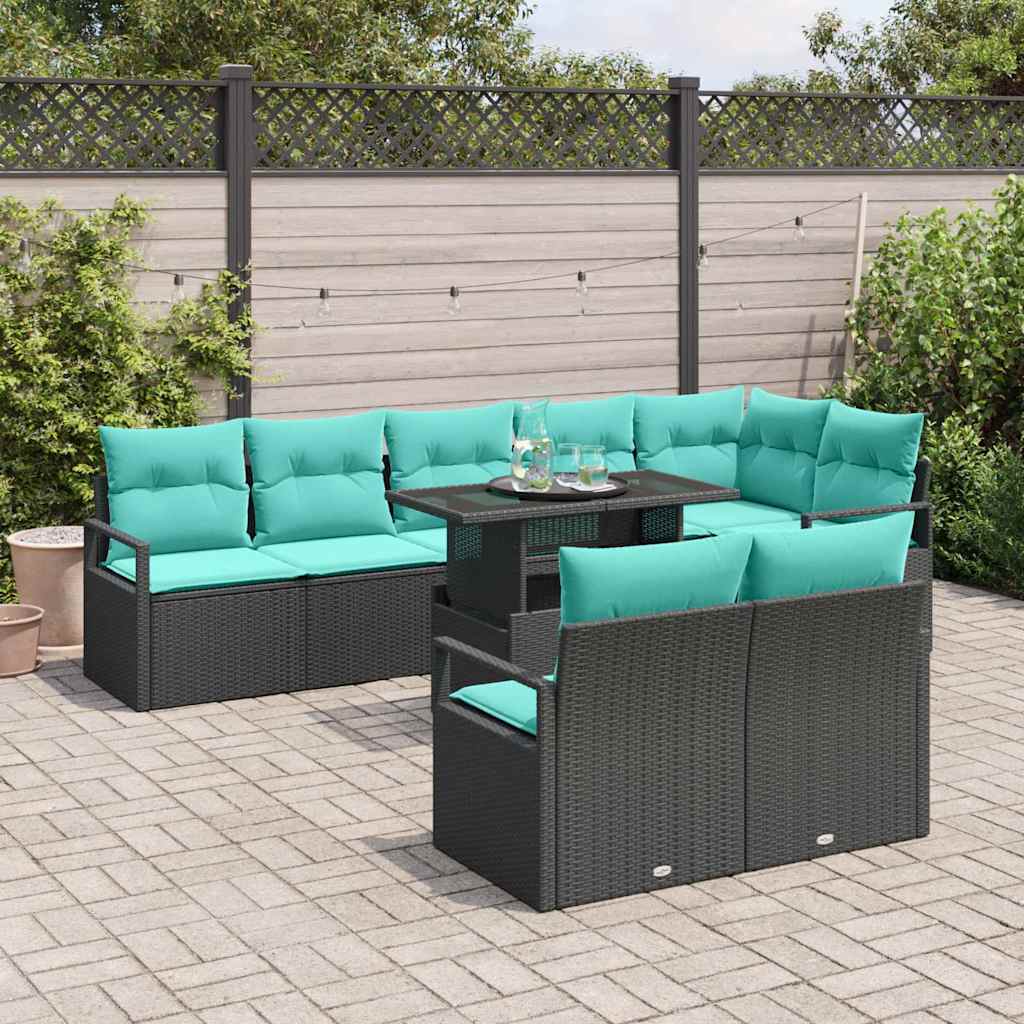 Set de canapele pentru grădină cu pernă 9 pcs Negru și Albastru GartenMobel Dekor