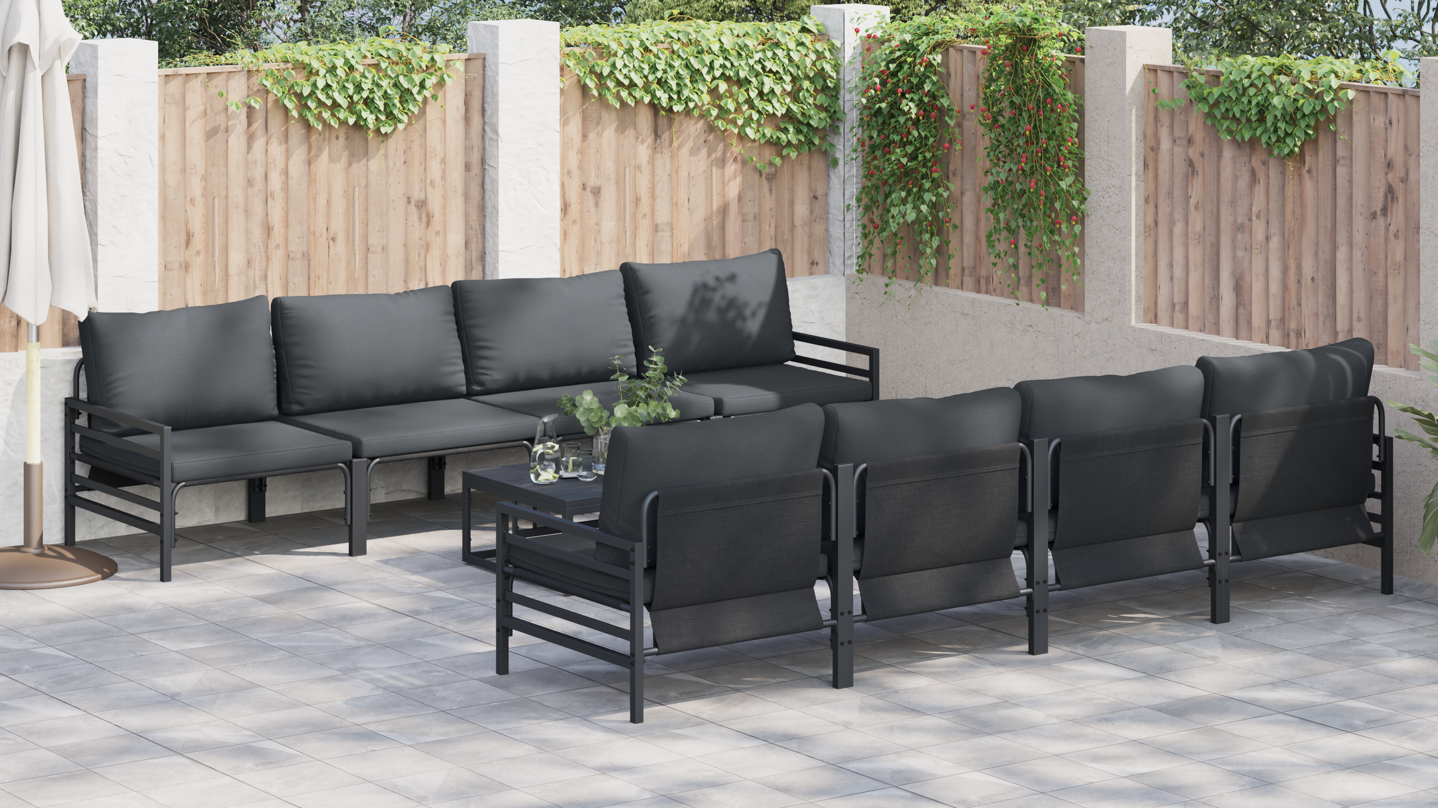 Setul ăsta de mobilier modular pentru exterior e super tare pentru că combină stilul cu utilitatea, având un design modern ce se potrivește perfect în grădini și pe terase. Cu un aspect chic, setul ăsta creează o atmosferă faină pentru întâlniri și relaxare. E pentru cei care apreciază un look curat și elegant, fiind perfect integrat în orice spațiu exterior și aducând o senzație contemporană care îi face pe toți să se bucure de aerul proaspăt.