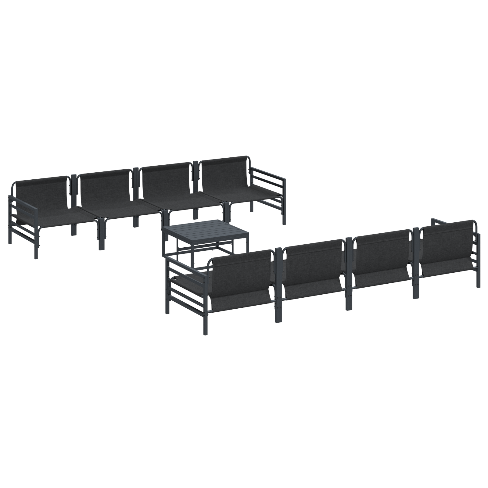 - Componente Incluse: Setul are patru canapele cu brațe, patru canapele centrale și o masă, oferindu-ți tot ce-ți trebuie pentru mobilierul de afară. Fiecare piesă adaugă flexibilitate și comfort în grădina sau pe terasa ta.