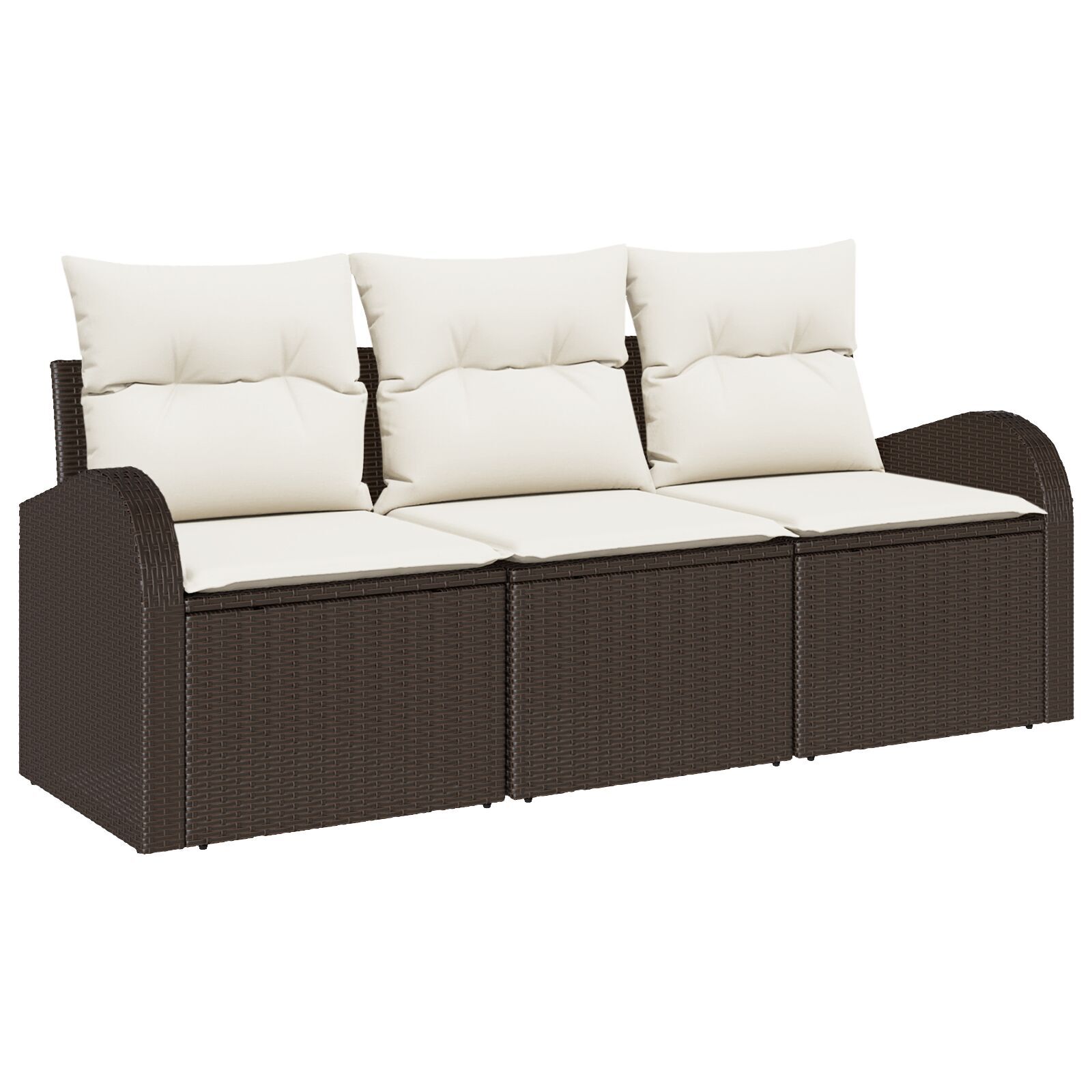 Set de canapele pentru grădină cu perne maro din ratan poliester, Canapea de grădină cu depozitare și perne maro din ratan poliester GartenMobel Dekor