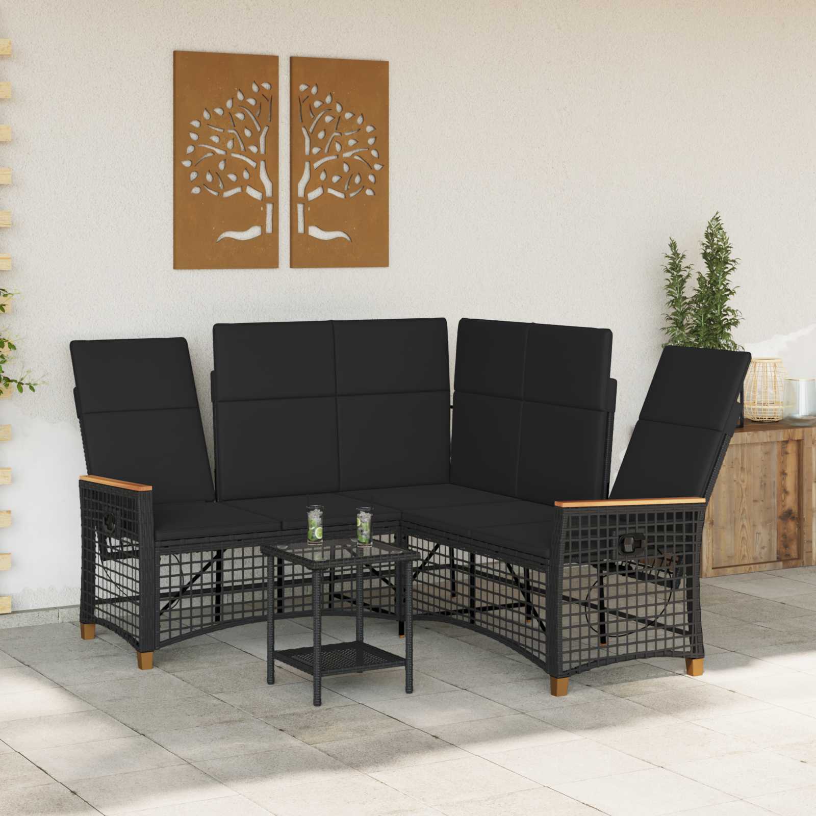 Set de canapele reclinabile pentru grădină Negru poliratan GartenMobel Dekor
