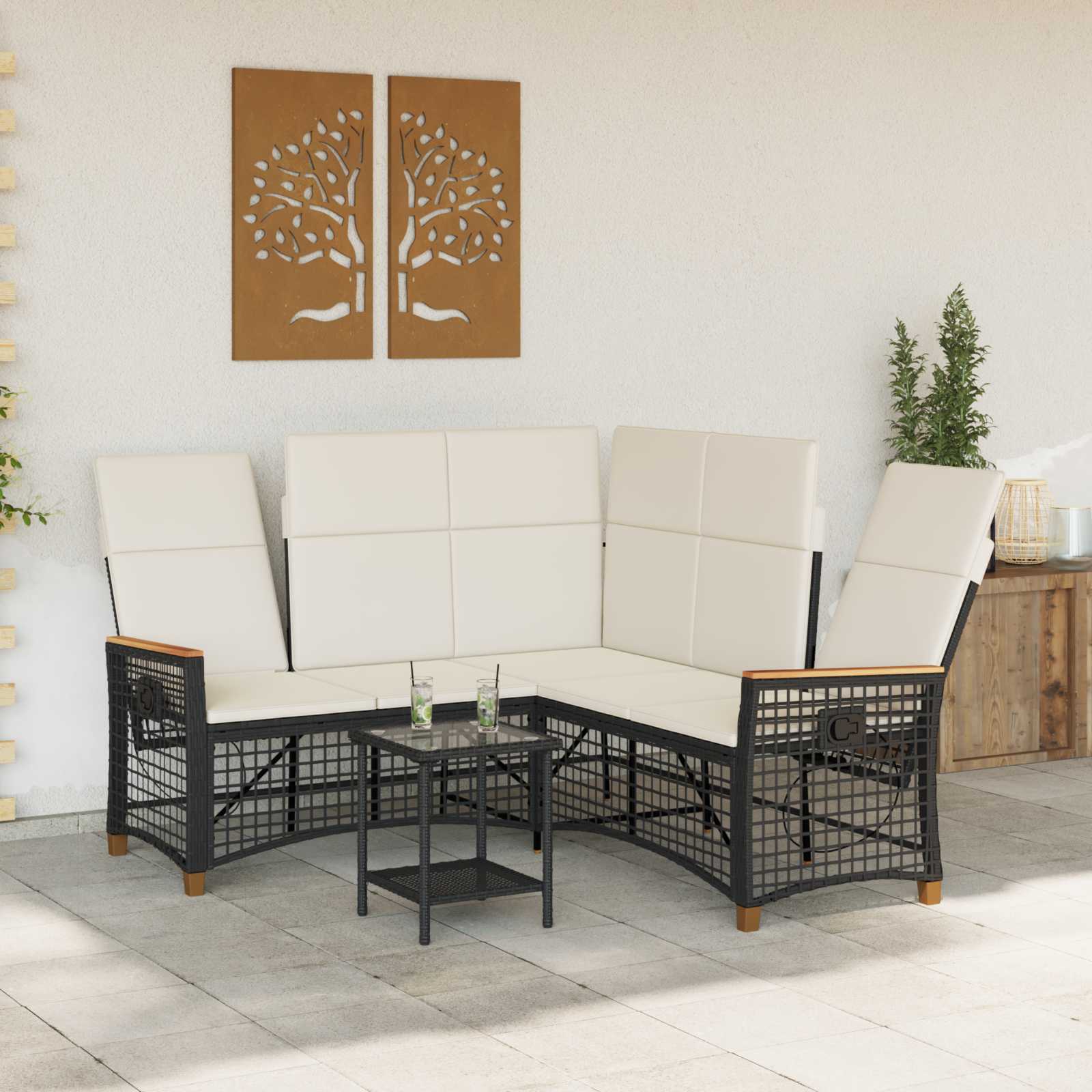 Set de canapele reclinabile pentru grădină Negru și Alb crem GartenMobel Dekor
