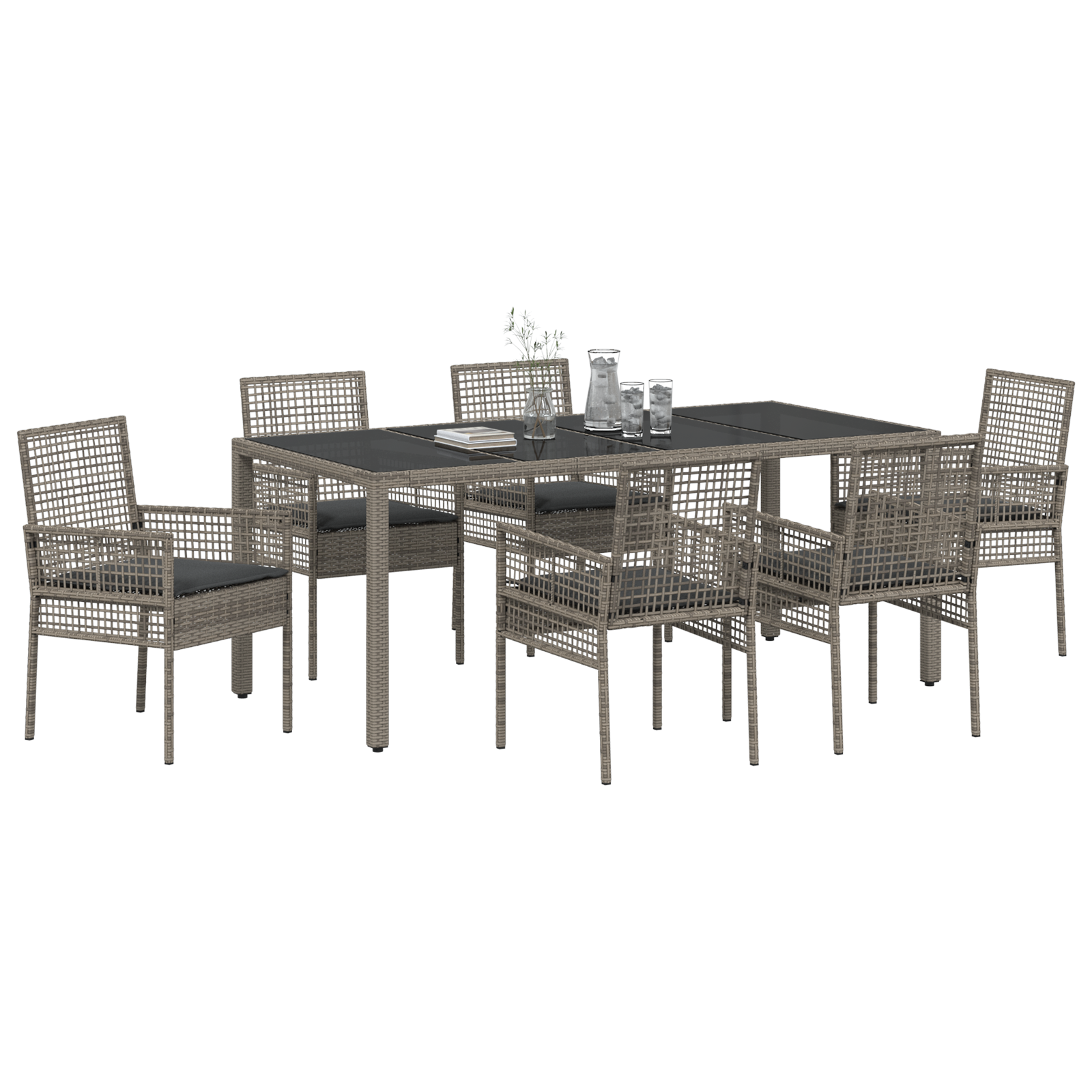 Set de cină de 7 piese cu perne Gri Poliratan GartenMobel Dekor