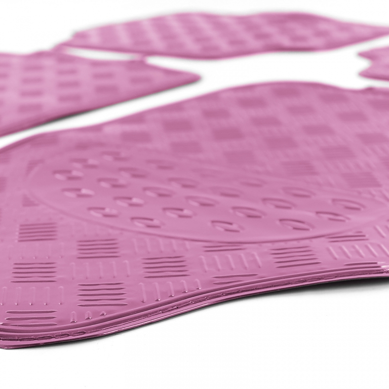 Set de covorașe auto 4 piese – Aspect placă de aluminiu | Roz cromat | Universal Cu acest set de covorașe auto de 4 piese, cu un aspect striking de placă de aluminiu, oferiți interiorului vehiculului dumneavoastră un aspect sportiv și modern. Suprafața roz cromat este un adevărat atrăgător de priviri și, în același timp, protejează fiabil podeaua vehiculului de murdărie, umiditate și uzură. Datorită țepilor de pe spate, covorașele rămân antiderapante în zona picioarelor și oferă mai multă aderență în timpul condusului. Ideale ca covorașe universale pentru multe vehicule – se introduc rapid și sunt gata de utilizare imediată. Set de covorașe auto 4 piese (față + spate) Material: Plastic/rubber foarte durabil Design: Aspect placă de aluminiu Culoare: Roz cromat Cu țepi pe spate pentru aderență antiderapantă Protejează în siguranță interiorul de murdărie, umiditate și abraziune Aspect sportiv, îmbunătățind aspectul Universale potrivite pentru multe vehicule (vă rugăm să rețineți dimensiunile) Dimensiuni: Covorașe față: L: 70 cm x W: 45 cm Covorașe spate: L: 41 cm x W: 45 cm Perfect pentru toți cei care doresc să ofere interiorului vehiculului un aspect sportiv, protejând în același timp eficient zona picioarelor.Informații de siguranță ale produsuluiProducător: Carparts-Online GmbHBrauckstr. 47, 58454 WittenContact: info@carparts-online.deInstrucțiuni de siguranță:Notă de siguranță pentru ambalaj:Există un risc de accidentare din cauza marginilor ascuțite de hârtie, carton sau folie, precum și a clipsurilor metalice ascuțite.Materialul de ambalare nu este un jucărie. Risc de sufocare pentru copii sau animale.Notă de siguranță pentru produs:Articolul poate avea margini ascuțite. Există un risc de accidentare.Recomandăm instalarea de către un atelier auto profesionist.