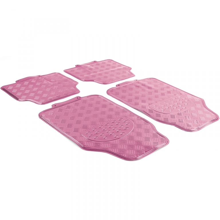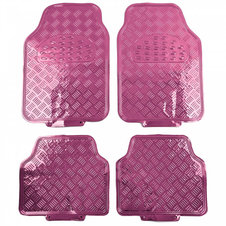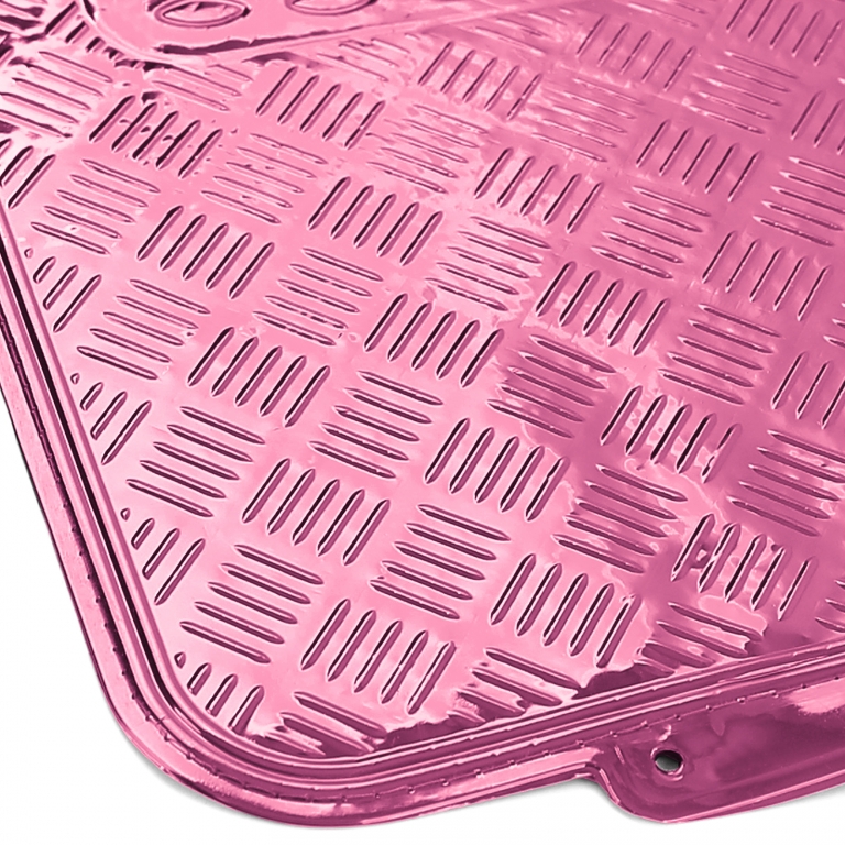 Set de covorașe din cauciuc pentru mașină 4 bucăți Aspect de tablă cu carouri din aluminiu Universal Crom Roz Performance AutoTuning