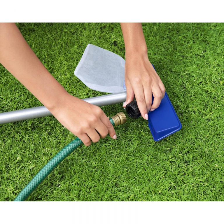 BESTWAY® Flowclear™ Set de Îngrijire a Piscinelor – Piscină Curată în Cel Mai Scurt TimpClar ca cristalul: Așa îți menții piscina curată și atrăgătoare în orice moment.Cu acest set practic de îngrijire a piscinelor, poți îndepărta fără efort murdăria, frunzele și resturile din piscina ta – rapid, ușor și fără electricitate.Vacuumul Venturi se conectează direct la un furtun de grădină standard. Presiunea apei rezultată creează o aspirație care desprinde murdăria de pe fundul piscinei și o colectează fiabil într-un sac de captare.Pentru curățarea rapidă a suprafeței apei, este inclus și un skimmer cu o plasă robustă.Manerul ușor din aluminiu asigură o operare confortabilă și permite o conexiune ușoară cu ambele accesorii.Detalii produs:- Set de Îngrijire a Piscinelor BESTWAY® Flowclear™- Potrivit pentru piscine de până la Ø 396 cm- Culoare: Argintiu / Albastru- Maner din aluminiu: aprox. 167 cm, Ø 30 mm- Vacuum Venturi (funcționează prin furtun de grădină)- Accesoriu skimmer cu plasă rezistentăCum funcționează:- Se conectează la un furtun de grădină standard- Fluxul de apă creează vacuum (efect Venturi)- Murdăria este aspirată și colectată în sac- Nu este necesară o conexiune la rețeaua electricăConținutul livrării:- Maner din aluminiu- Vacuum Venturi- Accesoriu skimmerConectează, curăță și bucură-te – pentru apă de piscină permanent clară cu un efort minim.Informații de Siguranță ale ProdusuluiProducător: Carparts-Online GmbHBrauckstr. 47, 58454 WittenContact: info@carparts-online.deInstrucțiuni de Siguranță:Notă de siguranță pentru ambalaj:Există un risc de rănire din cauza marginilor ascuțite de hârtie, carton sau folie, precum și a clipsurilor metalice ascuțite.Materialul de ambalare nu este un jucărie. Risc de sufocare pentru copii sau animale.Notă de siguranță pentru produs:Articolul ar trebui utilizat doar pentru funcția sa descrisă inițial. Dacă ai întrebări, te rugăm să ne contactezi prin metodele de contact menționate mai sus