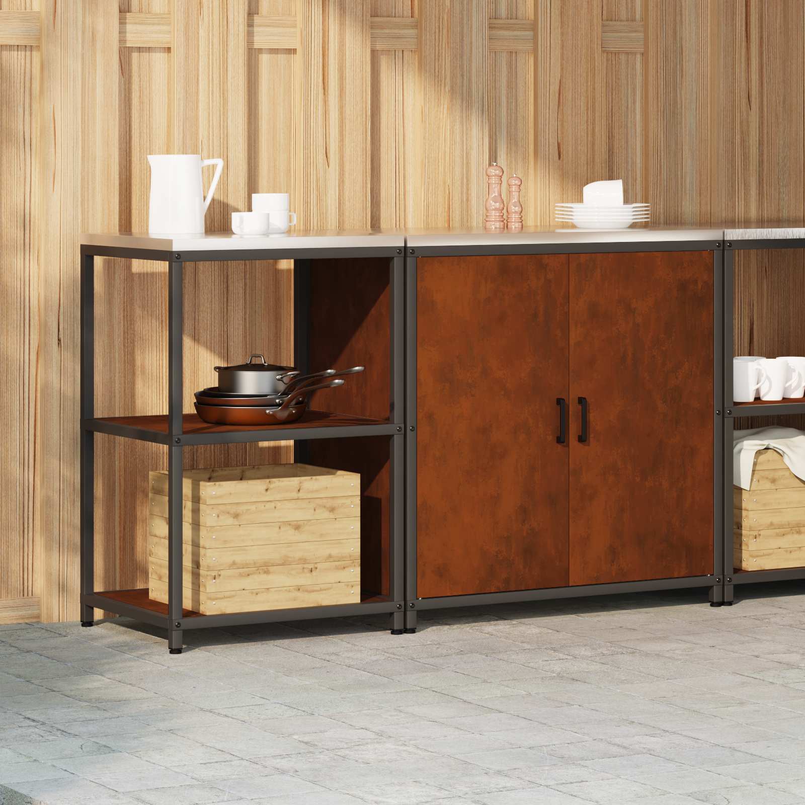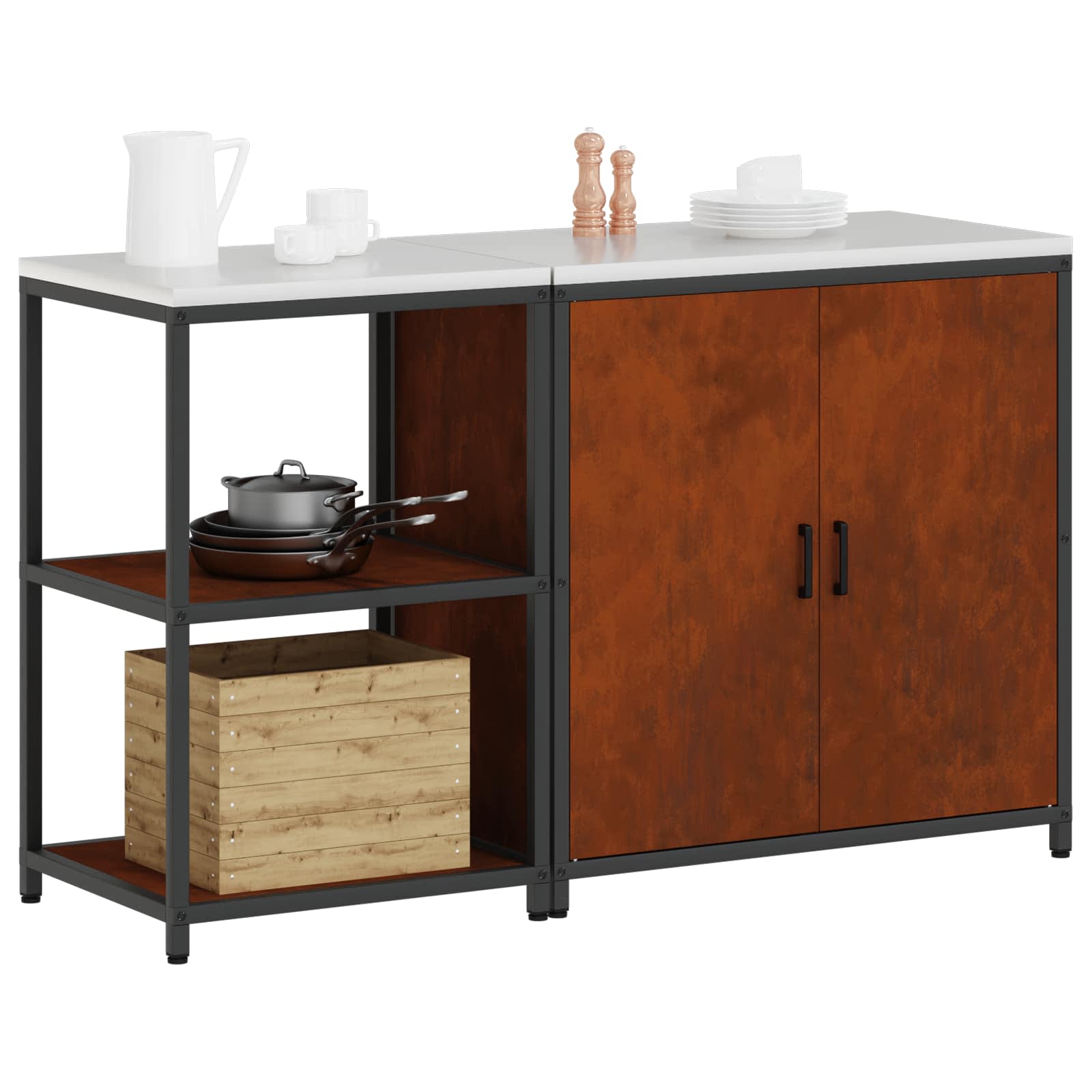 Set de depozitare pentru bucătărie cu raft cu ușă 2 pcs Ruginit GartenMobel Dekor
