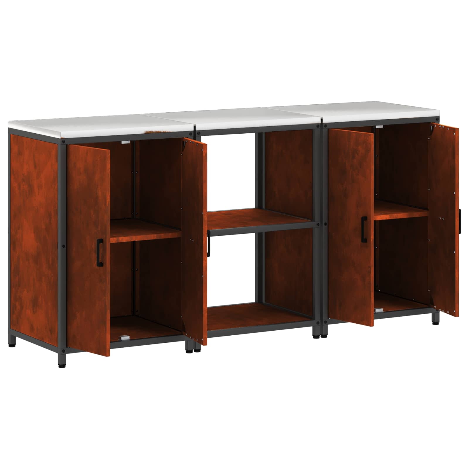 Set de depozitare pentru bucătărie cu raft cu ușă 3 pcs Ruginit GartenMobel Dekor
