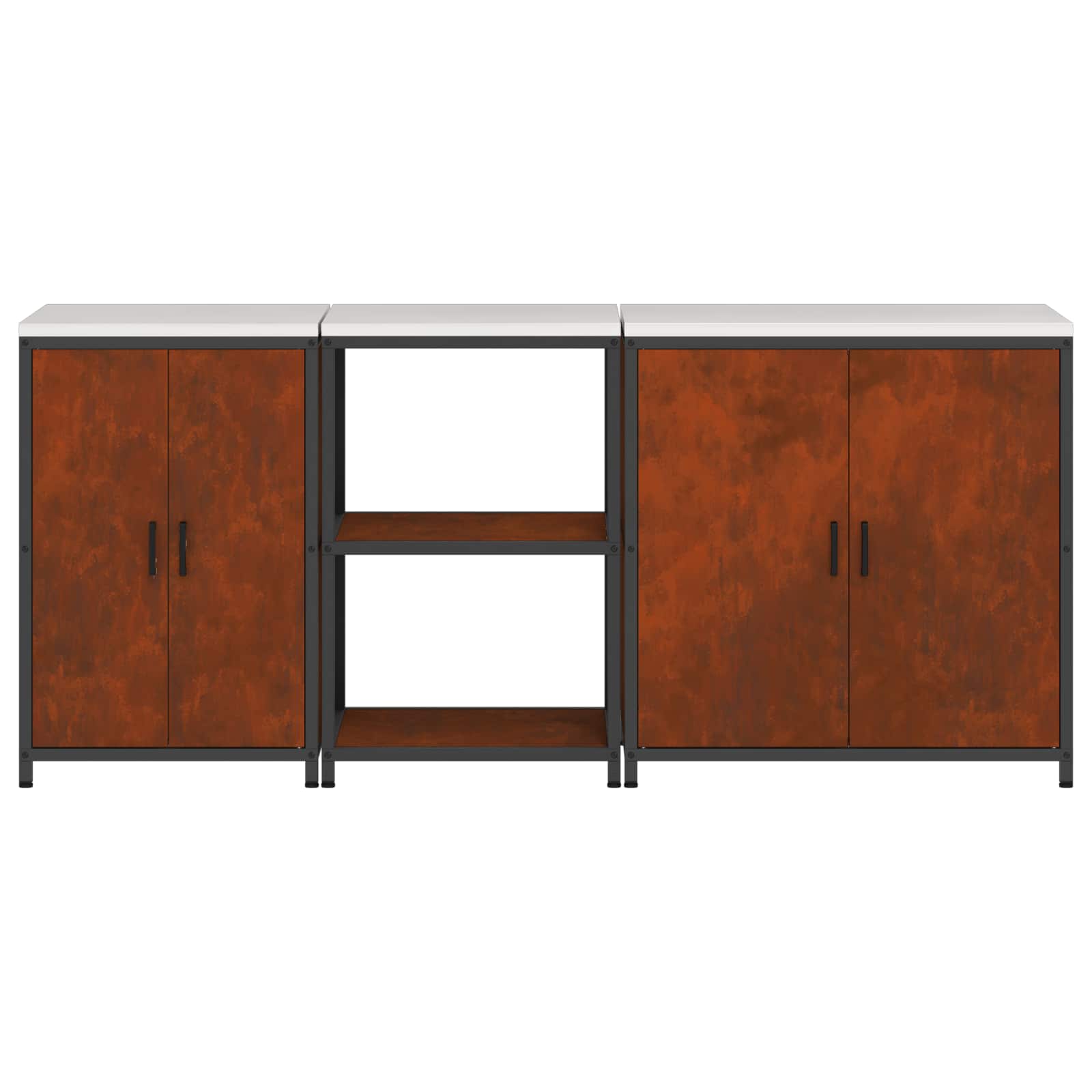 Set de depozitare pentru bucătărie cu raft cu ușă 3 pcs Ruginit GartenMobel Dekor