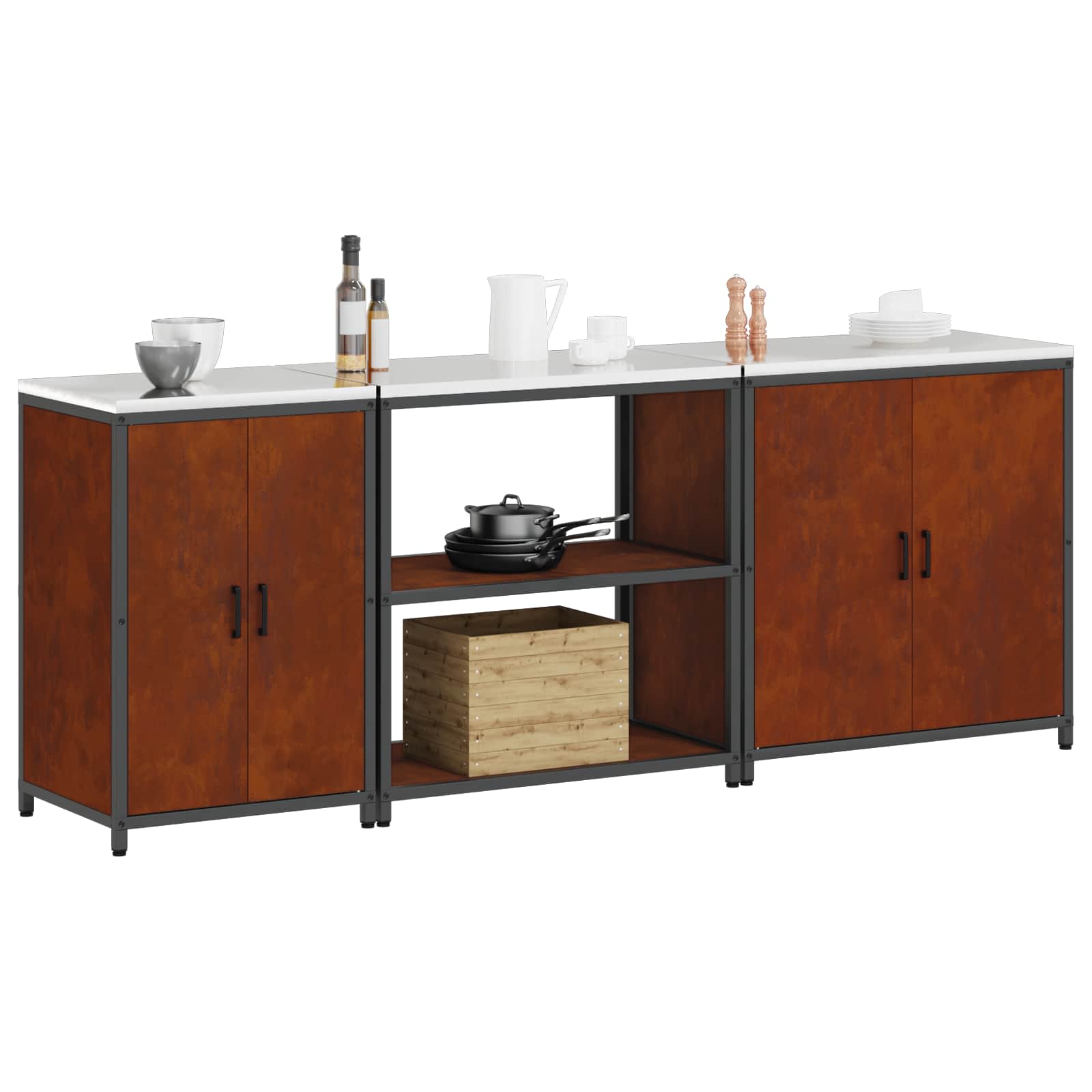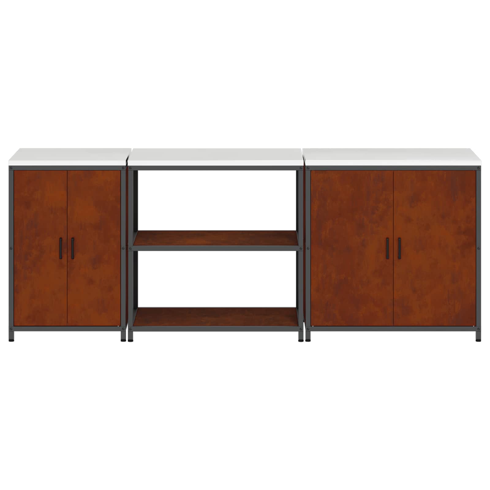 Set de depozitare pentru bucătărie cu raft cu ușă 3 pcs Ruginit GartenMobel Dekor