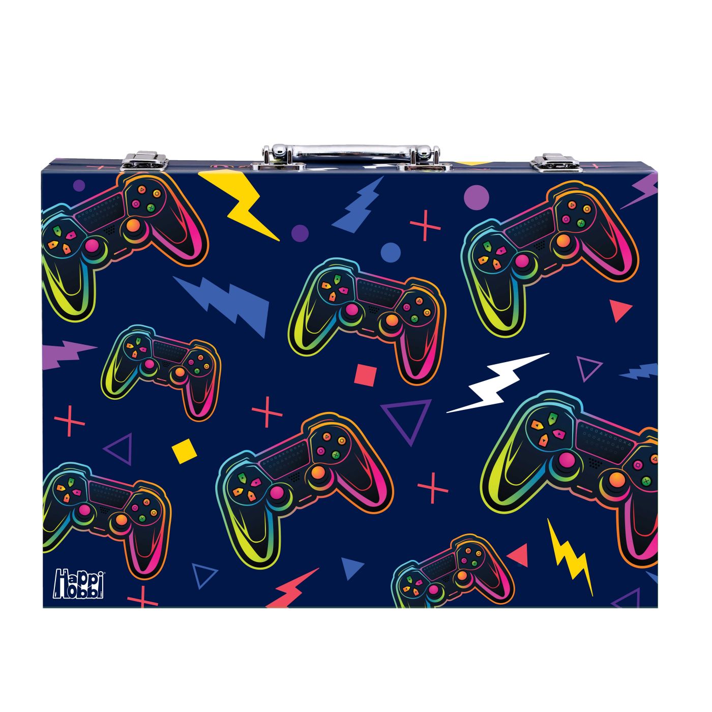 Descopera un set de desen pentru copii creat special pentru micii artisti pasionati de culoare si imaginatie. Happi Hobbi Art Case Deluxe cu design inspirat din jocuri video include 100 de accesorii utile pentru desen, colorare si activitati creative, toate organizate intr-o trusa practica cu maner, usor de transportat.