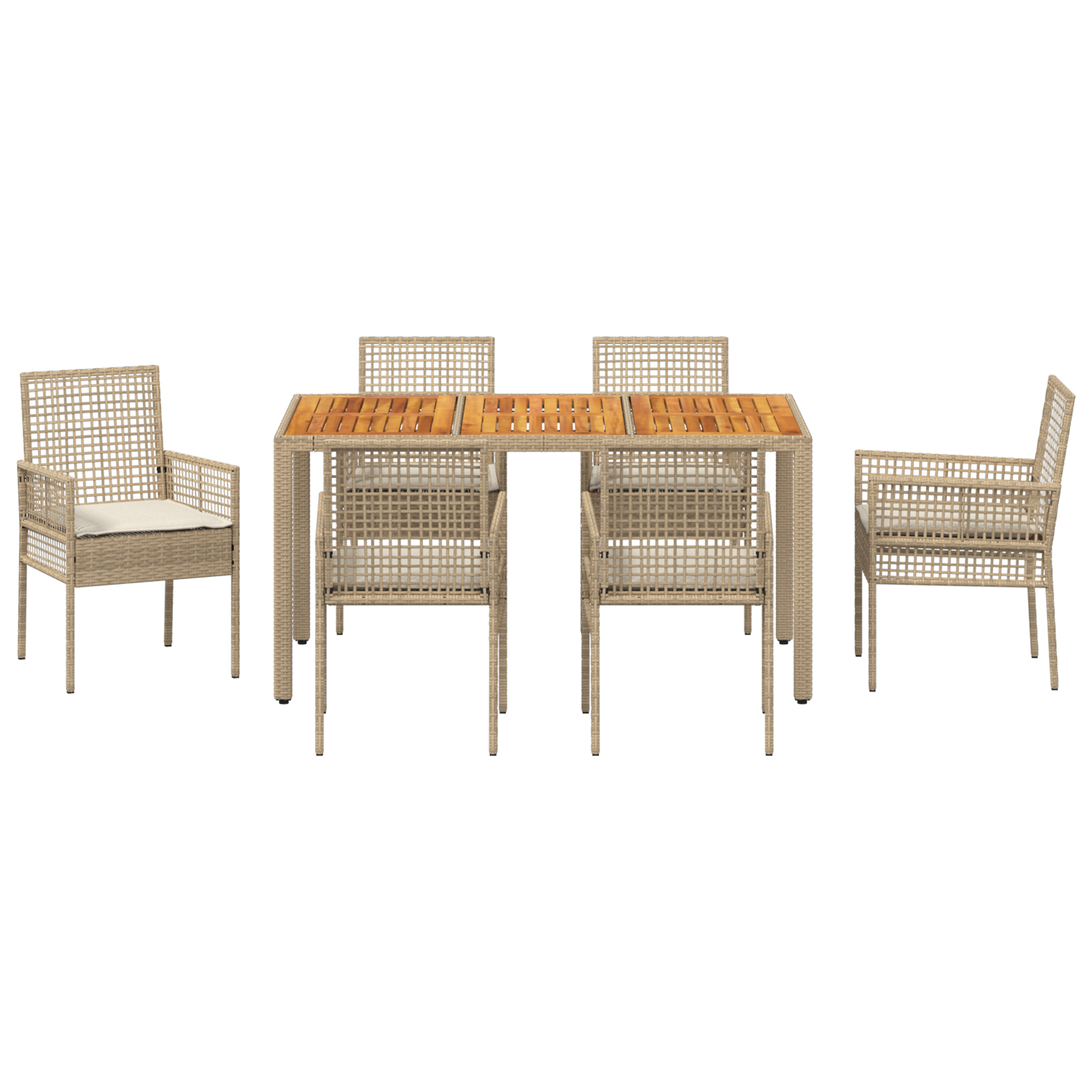 Set de dining 7 piese pentru grădină cu perne bej din ratan GartenMobel Dekor