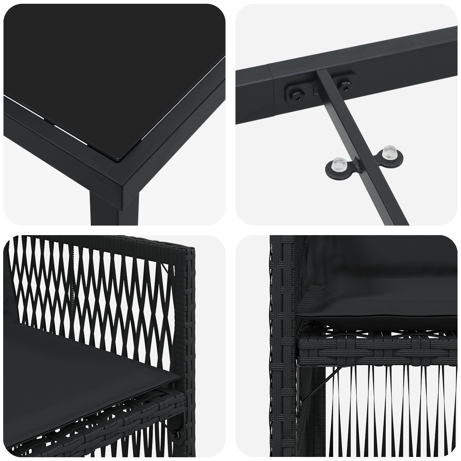 Set de dining cu 5 piese cu perne Negru Ratan Poly, Masă de grădină Neagră 160x80x73 cm Sticlă Temperată GartenMobel Dekor