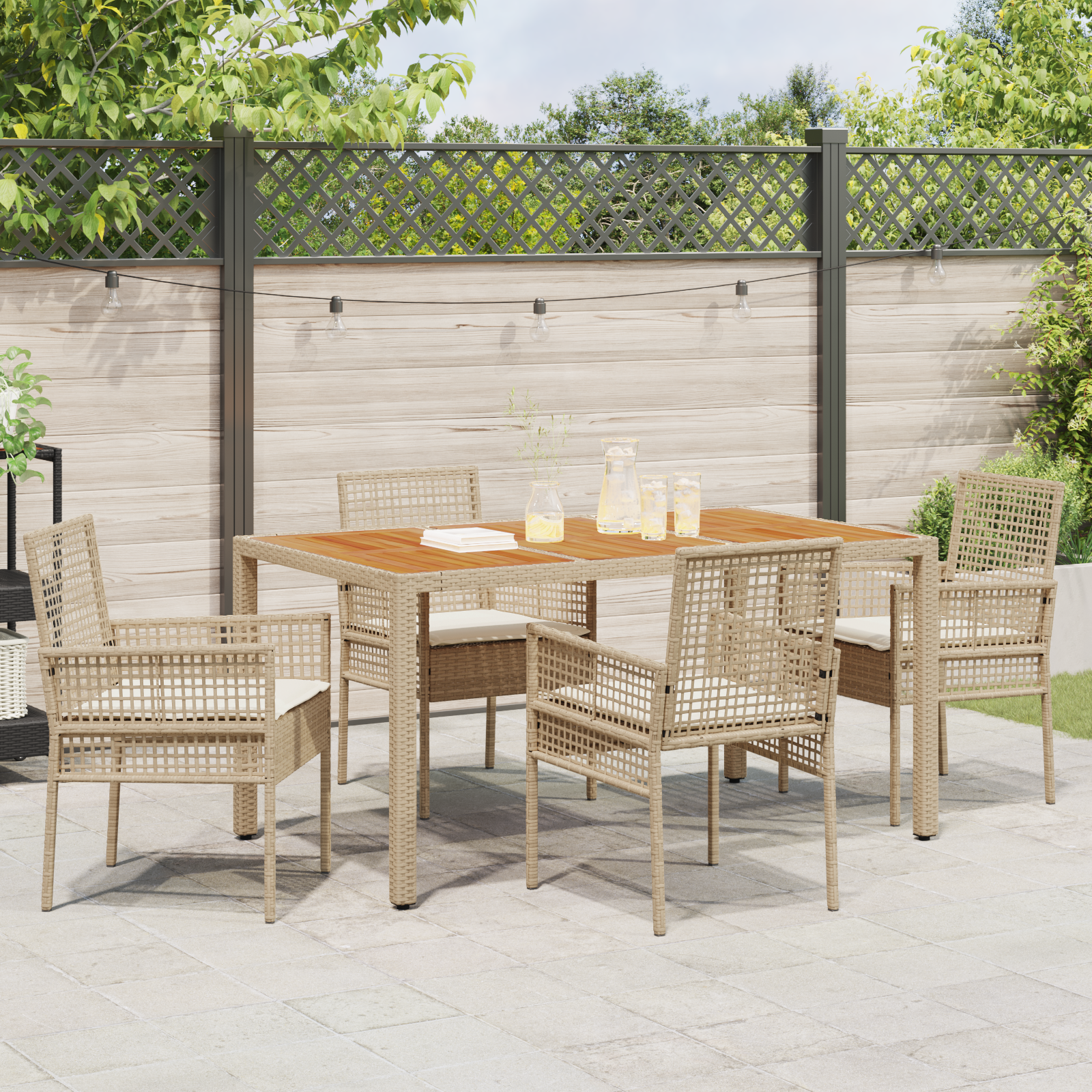 Set de dining cu 5 piese pentru grădină cu pernițe bej din ratan GartenMobel Dekor